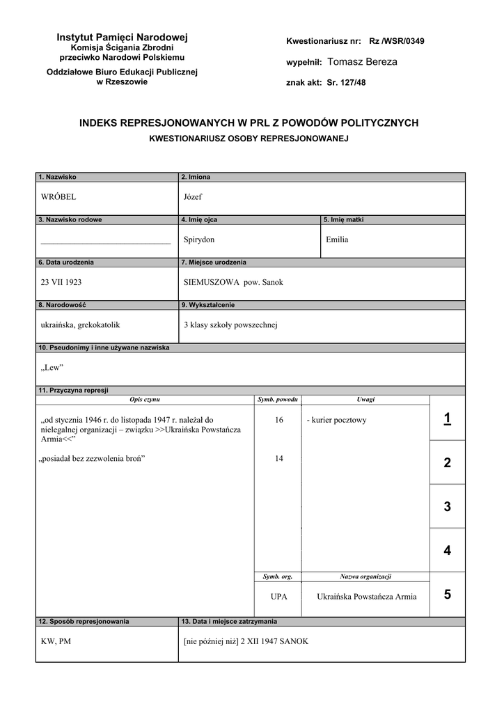 rew. terenowa: OSETEK Józef – PUBP Sanok