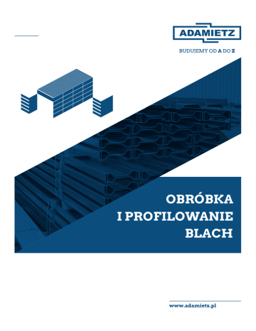 OBRÓBKA I PROFILOWANIE BLACH BUDUJEMY OD A DO Z OBRÓBKA I PROFILOWANIE BLACH Zawsze do usług! Zorientowanie na klienta, umiejętne wsłuchanie się w jego potrzeby, partnerska oferta kompleksowej obsługi, doświadczenie i wiedza – to stałe wartości naszej firmy, które dla naszych odbiorców stanowią gwarancję najwyższej jakości. Jakości, którą oddajemy do ich dyspozycji. Naszą przewagą jest specjalizacja w produkcji: profili ocynkowanych do długości 12 m, według indywidualnych potrzeb i projektów klientów, obróbek blacharskich według indywidualnych potrzeb wykonanych z blachy ocynkowanej, powlekanej, HPS, PVDF, blachy aluminiowej, nierdzewnej i tytan-cynku, profili typu SIGMA, zgodnie z programem produkcji zamieszczonym na stronie internetowej firmy, blach trapezowych, detali towarzyszących, tj. redukcje, przelewy, narożniki. Dzięki nowoczesnemu parkowi maszynowemu oraz wdrożonemu systemowi certyfikującemu gwarantujemy wysoką jakość produktów. Nasze wyroby oznaczamy znakiem CE oraz deklarujemy zgodność z normą EN 1090. Obsługujemy całość projektu, od uzgodnienia wymaganych warunków technicznych, poprzez wykonanie prototypu, serii próbnej aż do finalnego wdrożenia produkcji zamówionego wyrobu. Dział handlowy - sprzedaż - obsługa klienta Produkcja Siedziba Tomasz Franke z-ca dyrektora sprzedaży tel. kom. +48 698 853 563 e-mail [email protected] Arkadiusz Olszewski z-ca dyrektora ds. produkcji – szef produkcji tel. kom. +48 602 173 674 e-mail [email protected] ADAMIETZ Sp. z o.o. 47-100 Strzelce Opolskie ul. Braci Prankel 1 tel. +48 77 463 00 65 fax +48 77 463 92 00 e-mail [email protected] Marcin Otrzonsek doradca techniczno handlowy export tel. kom. +48 600 311 791 e-mail [email protected]