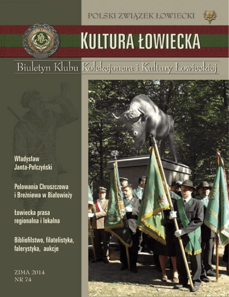 Władysław Janta-Połczyński Polowania Chruszczowa i Breżniewa w Białowieży Łowiecka prasa regionalna i lokalna Bibliofilstwo, filatelistyka, falerystyka, aukcje ZIMA 2014 NR 74 1 Z życia KKiKŁ PZŁ „Kultura Łowiecka” w Borze k. Rzeszowa P różna ufność w marmurze, próżna i w żelezie,/ to trwa do skonu świata co na papier wlezie. To tytuł wystawy zaprezentowanej przez członków Rzeszowskiego Oddziału KKiKŁ PZŁ 7 września 2014 r. podczas XIX Podkarpackiego Pucharu Jesieni w Borze k. Rzeszowa. D o tradycji należą coroczne wrześniowe spotkania czteroosobowych reprezentacji kół łowieckich, w skład których wchodzą trzej członkowie zarządu i jeden myśliwy najmłodszy stażem członkowskim. W tym roku odrębny zespół tworzyły także urocze diany. Podczas otwarcia i powitania uczestników Zdzisław Siewierski łowczy okręgowy w Rzeszowie skierował słowa uznania do członków Klubu Kolekcjonera i Kultury Łowieckiej PZŁ za wieloletni udział w organizowaniu tematycznych wystaw kolekcjonerskich, towarzyszących ważniejszych imprezom strzeleckim. Złożył życzenia i gratulacje z okazji jubileuszu dwudziestolecia kwartalnika „Kultura Łowiecka” oraz poinformował uczestników pikniku o zorganizowanej z tej okazji wystawie. Prezes Grażyna Kret pozdrowiła uczestników imprezy, podziękowała władzom za wyróżnienie, a zarządom kół łowieckich i współpracownikom klubu kolegom myśliwym za pomoc w szerzeniu kultury łowieckiej wśród społeczeństwa. Przedstawiła genezę powstania wystawy i zaprosiła do jej zwiedzenia. Przy dźwiękach muzyki myśliwskiej w wykonaniu sygnalistów z mieleckiego zespołu „Echa Kniei” Z. Siewierski, Z. Ziobrowski i G. Kret otworzyli wystawę, obejmującą: ekspozycję prasy klubowej (73 numery kwartalnika” Kultura Łowiecka”), pamiątki krajowe i regionalne wydane z okazji 20. rocznicy „Kultury Łowieckiej” oraz plansze, na których zobrazowano historię i dorobek klubu. Zaprezentowano także prasę łowiecką województwa podkarpackiego i sąsiednich okręgów PZŁ oraz monografie kół łowieckich okręgu rzeszowskiego. W dziale „Myśliwi piszą” pokazano ich twórczość indywidualną (wydania książkowe, pamiętniki łowieckie). Były także medale, oznaki i odznaki, buttony z rzeszowskich zawodów strzeleckich. Eksponaty zaprezentowali: Zdzisław Ziobrowski, Grażyna Kret, Stefan Sochacki, Jan Machowski i Zbigniew Dec. Działacze, myśliwi z rodzinami i sympatycy łowiectwa, przeglądali wydawnictwa, fotografowali, czytali, zapisywali tytuły czasopism i książek. Oferowali pomoc w uzupełnianiu monografii kół i wyrażali chęć współpracy z klubem. Wystawa cieszyła się dużym zainteresowaniem, o czym świadczy wysoka frekwencja i wpisy w pamiątkowej kronice. Wystawę i piknik strzelecki upamiętniliśmy okolicznościowym buttonem, którym uhonorowaliśmy wszystkich zwiedzających. Tradycyjne i odświętne spotkanie Między naturą a kulturą dostarczyło wiele radosnych przeżyć, umocniło więzi organizacyjne i wzbogaciło dorobek kulturowy polskiego łowiectwa, a klub zyskał wielu sympatyków. Grażyna Kret S. Sochacki, B. Kidacki, G. Kret, J. Machowski, Z. Ziobrowski, Z. Dec, J. Banaś Kultura Łowiecka 4 (74) 2014 2 Imprezy i uroczystości VIII Hubertowskie Spotkania w Puszczy Knyszyńskiej Czarna Białostocka 2014 W niedzielę 7 września już po raz ósmy myśliwi i leśnicy, a przede wszystkim bardzo licznie mieszkańcy Czarnej Białostockiej i okolic, mieli okazję do integracyjnego spotkania nad pięknym zalewem Czapielówka. Można było wysłuchać pięknych koncertów muzyki myśliwskiej w wykonaniu m.in. zespołów Reprezentacyjnego PZŁ oraz Hubertusa z Kwidzyna, można było obejrzeć kilka wystaw, a wśród nich przygotowaną przez Galicyjski Oddział Klubu Kolekcjonera i Kultury Łowieckiej PZŁ pod tytułem „Zwierzyna w falerystyce i na pocztówkach ze zbiorów Bogdana Kowalcze” oraz „Zakon Kawalerów Orderu Złotego Jelenia w fotografii Magdy Langer”. Można było też wziąć udział w konkursie na „Hubertowskie Jadło”. Spotkaniu towarzyszyły ciekawe prezentacje Lasów Państwowych oraz Polskiego Związku Łowieckiego. Imprezę nad zalewem poprzedziła uroczysta koncelebrowana Msza Hubertowska w kościele pod wezwaniem Świętej Rodziny w Czarnej Białostockiej Kultura Łowiecka 4 (74) 2014 Imprezy i uroczystości 3 z udziałem licznych pocztów sztandaPo sympozjum, jego uczestnicy wzięli udział rowych, w tym także delegację Zakonu w otwarciu „Ośrodka Edukacji Leśnej im. LeśKawalerów Orderu Złotego Jelenia ników Puszczy Knyszyńskiej”. wraz ze swoją chorągwią. Mszę uświetnił mistrzowski występ zespołu „HuMarek Piotr Krzemień bertus” z Kwidzyna pod dyrekcją Mifot. Magda Langer oraz autor chała Wojtyły. W sobotę w ramach VIII Hubertowskich Spotkań w Puszczy Knyszyńskiej odbyło się trzecie Międzynarodowe Sympozjum Łowieckie pod tytułem Zwierzyna drobna w kulturze łowieckiej i leśnej. Wzięli w nim udział myśliwi i leśnicy z Polski, Litwy oraz Białorusi. Referat programowy wygłosił Marek Piotr Krzemień, a koreferat Zwierzyna drobna w kulturze łowieckiej i leśnej na Litwie – Kęstutis Pételis. Podczas przerwy uczestnicy sympozjum mieli okazję zobaczyć ww. wystawy. W drugiej części sympozjum poruszony został nurtujący społeczność Podlasia temat zagrożenia dla dzików afrykańskim pomorem świń, czyli wirusem ASF. Kultura Łowiecka 4 (74) 2014 4 Z życia KKiKŁ PZŁ Jarmark Świętojański w Lanckoronie 21 – 22 czerwca 2014 roku G iełdy kolekcjonerskie to niewątpliwie jedna z najważniejszych form działania członków Klubu Kolekcjonera i Kultury Łowieckiej PZŁ. Stanowią one nie tylko okazję do kolekcjonerskich spotkań, ale przede wszystkim, jeżeli są dostępne szerokiej publiczności, stanowią idealną okazję do promocji łowiectwa i kształtowania jak najlepszego wizerunku 
