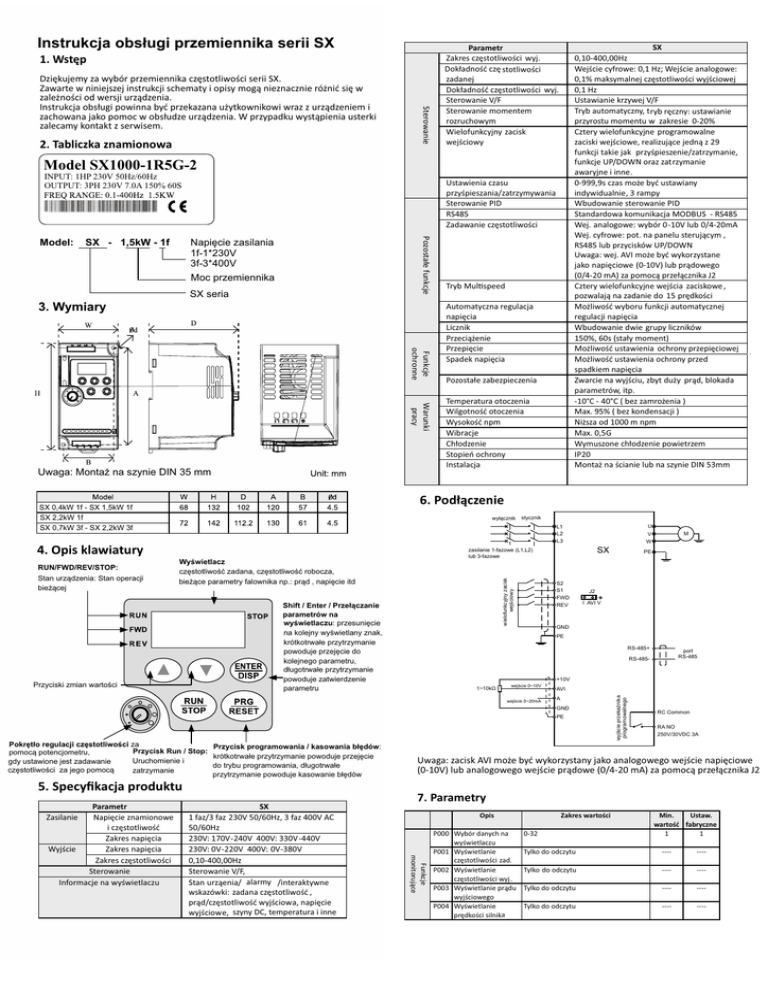 DTR Falowniki SX