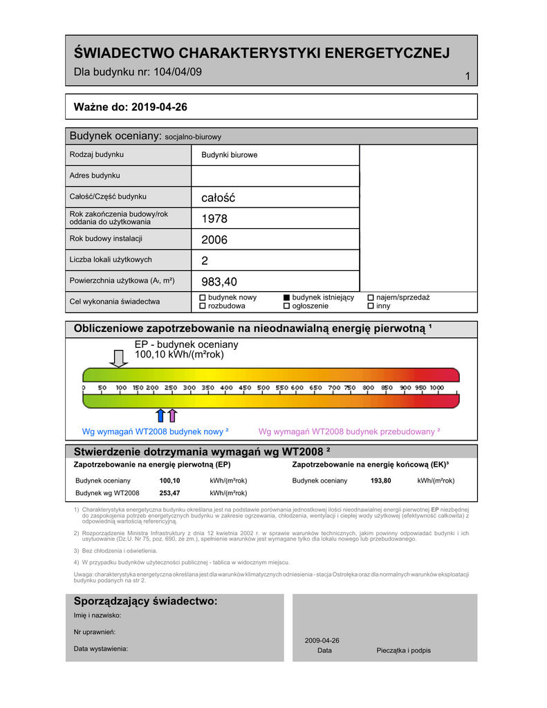 Świadectwo charakterystyki energetycznej budynku biurowego