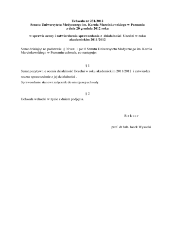 Uchwała nr 231/2012 Senatu Uniwersytetu Medycznego