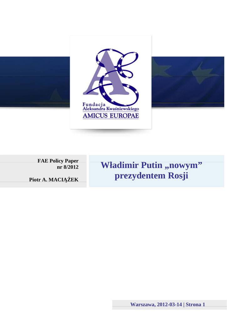 FAE Policy Paper nr 8/2012 Piotr A. MACIĄŻEK Władimir Putin „nowym” prezydentem Rosji Warszawa, 2012-03-14 | Strona 1 Władimir Putin „nowym” prezydentem Rosji FAE Policy Paper nr 8/2012 Piotr A. Maciążek Władimir Putin został „nowym” prezydentem Federacji Rosyjskiej, zdobywając 63,6 proc. głosów. Wynik nie był trudny do przewidzenia, przecież już w sierpniu 2009 roku zarejestrowano domenę internetową „Putin2012”. Przypadek? Być może, ale przecież w tym samym czasie premier i prezydent FR spotkali się w Soczi.1 Toksyczny ekosystem polityczny Rosji Siła Putina tkwi nie tyle w fałszerstwach wyborczych, ile w swoistym politycznym „ekosystemie”, który nowy prezydent wytworzył wraz ze swoim nadwornym architektem politycznym Władysławem Surkowem. Partia Jedna Rosja – jądro tego układu – jest zatem najbardziej umiarkowana, postpolityczna, niemal bezideowa, tym samym akceptowalna i dla partnerów zagranicznych i dla sporej części Rosjan. Podobną rolę w kontekście wyborów prezydenckich pełni sam Władimir Władimirowicz, w którego blasku grzeją się od wielu lat zarówno koncesjonowany komunista Ziuganow, jak i nacjonalista Żyrinowski. Układ ten tworzą ludzie zainteresowani wyłącznie pieniędzmi, świadczy o tym m.in. dość niefortunna wypowiedź ustępującego prezydenta D. Miedwiediewa, która miała paść na jego niedawnym spotkaniu z opozycją.2 Stwierdził on mianowicie, że „obecne wybory były jednymi z najbardziej uczciwych [w Rosji], nie tak jak te sfałszowane w roku 1996.”3 Tak więc ich zwycięzcą był wówczas Ziuganow, który prawdopodobnie zawarł układ z Borysem Jelcynem. Dlaczego inaczej miałby postąpić obecnie z Putinem? Mironow i Żyrinowski to ludzie tego samego pokroju, jedyną „nowością wyborczą” był zatem Michaił Prochorow. M. Prochorow zaczął przejawiać polityczne ambicje w dość nagły sposób, wcześniej przez wiele lat był znanym playboyem, który dorobił się fortuny w szalonych latach 90. ub. wieku u boku Władimira Potanina, wicepremiera w rządzie Wiktora Czarnomerdina. Warto wspomnieć, że swoje pierwsze polityczne kroki stawiał niedawno – i z poparciem Kremla – w partii Słuszna Sprawa. Szybko został zmuszony do jej opuszczenia. Czy chodziło o uwiarygodnienie Prochorowa w oczach społeczeństwa? Jego próby kontaktowania się z opozycją, wspierania jej pieniędzmi można przecież rozumieć dwojako. Putin tuż po zwycięstwie wyborczym – o czym wiemy już post factum 1 http://www.korespondent-wschodni.org/informacje/strona-putin2012-zarejestrowana-25-roku-temu http://www.mk.ru/politics/news/2012/02/22/674696-nemtsov-i-babakin-podtverdili-chto-medvedev-priznal-vyiboryieltsina-v-1996-godu-sfalsifitsirovannyimi.html 3 http://politykawschodnia.pl/index.php/2012/02/29/maciazek-putin-byl-nielegalnym-prezydentem/ 2 Warszawa, 2012-03-14 | Strona 2 Władimir Putin „nowym” prezydentem Rosji FAE Policy Paper nr 8/2012 Piotr A. Maciążek – zaprosił go zresztą do „konstruktywnego dialogu”, o jaką formę współpracy może chodzić? Dowiemy się zapewne niebawem.4 Podsumowując, W. Putin jawiła się jako nie tylko najbardziej poważny i umiarkowany z kandydatów, ale także w istocie jedyny godny wyboru. Pozostali uczestnicy prezydenckiej roszady są beneficjentami systemu, który stworzył. Fałszerstwa i charakter nowej opozycji Zwycięstwo Putinowi, oprócz odpowiedniej inżynierii, która wykreowała polityczny ekosystem, zapewniły także zapewne fałszerstwa wyborcze i charakter „grudniowej opozycji”. Szacuje się, że w Rosji można sfałszować ok. 30 proc. głosów, trudno zrobić to jednak w wielomilionowych megalopolis, będących zapleczem upper-middle class, z której wywodzą się kontestujący władzę „Dekabryści”. O wiele łatwiej na prowincji, gdzie poparcie dla Putina jest duże. Brak pewności siebie władzy oczywiście istnieje i był widoczny w próbach „podrasowywania” wyników krajowych w proputinowskich, oddalonych od centrów cywilizacyjnych jednostkach administracyjnych FR. Kaukaz Północny, zwany „wewnętrzną granicą”, to doskonały przykład. Frekwencja np. w Dagestanie wynosiła 75,95 proc., w Czeczenii 94,89 proc., a w Karaczajo-Czerkiesji 80,85 proc. Poparcie dla Putina we wspomnianych jednostkach terytorialnych to kolejno: 92,84 proc., 99,74 proc. i 91,36 proc. Oczywiście faktyczną skalę fałszerstw będzie można ocenić niebawem na przykładzie „Krzywej Gaussa”, za pomocą której wykazano cuda nad urnami podczas wyborów do Dumy.5 Niemniej świeżo zaserwowany nam wynik Władimira Władimirowicza w Wydzielonym Mieście Moskwie (46,95 proc.) wskazuje, że jego poparcie jest najsłabsze – jak już wspomniano – właśnie w megalopolis zamieszkiwanych przez najbardziej zamożną i najlepiej wykształconą część społeczeństwa. Propaganda Istotna dla sukcesu Putina była także sfera propagandowa w tradycyjnych mediach. Internet kojarzony z Dekabrystami nie jest medium, które ma największy wpływ na ogół Rosjan. Tym można tłumaczyć proste zabiegi PR-owe obozu władzy, takie jak „zamach” na Władimira 4 5 http://www.rp.pl/artykul/78946,833658.html http://lubczasopismo.salon24.pl/politykawschodnia/post/373160,krzywa-gaussa-a-krzywy-ryj Warszawa, 2012-03-14 | Strona 3 Władimir Putin „nowym” prezydentem Rosji FAE Policy Paper nr 8/2012 Piotr A. Maciążek Władimirowicza, do którego nie doszło, bo zamachowcy sami wysadzili się w powietrze, czy odnalezienie morderców Politkowskiej, którymi wedle zeznań Michaiła Pawluczenkowa byli Bierezowski i Zakajew… Tak prymitywnym zagrywkom towarzyszyły w kampanii wyborczej bardziej wyrafinowane metody, by wspomnieć np. dyskredytowanie opozycji wyciekającymi do sieci filmikami erotycznymi (np. nagranie masturbującego się Ryżkowa), czy zabiegi Gazpromu, który chciał przejąć kontrolę nad radiem „Echo Moskwy”. W przypadku tej sta