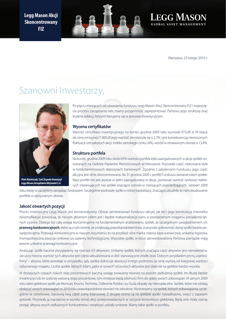 Szanowni Inwestorzy - Legg Mason Akcji Skoncentrowany FIZ