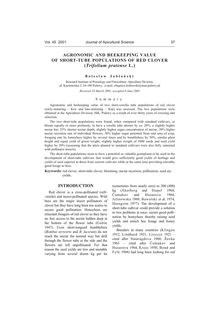 ʱ´ň ěë îđđď Ö±«®˛ż´ ±ş ß°·˝«´¬«®ż´ Í˝·»˛˝» íé ßŮÎŃŇŃÓ×Ý ßŇÜ ŢŰŰŐŰŰĐ×ŇŮ ĘßÔËŰ ŃÚ ÍŘŃÎĚóĚËŢŰ ĐŃĐËÔßĚ×ŃŇÍ ŃÚ ÎŰÜ ÝÔŃĘŰÎ ř Ě®·ş±´·«ł °®ż¬»˛» Ôň÷ ޱ´»mż© Öżľm±/µ· λ»ż®˝¸ ײ¬·¬«¬» ±ş бł±´±ą§ ż˛Ľ Ú´±®·˝«´¬«®»ô ß°·˝«´¬«®» Ü·Ş··±˛ô «´ň Őż¦·ł·»®µż îô îěóďđđ Đ«mż©§ô »ółż·´ć ¦ľ·ą˛·»©ňµ±´¬±©µ·ŕłż˛ň°«´ż©§ň°´ λ˝»·Ş»Ľ îč Óż®˝¸ îđđďĺ ż˝˝»°¬»Ľ ç Ö«˛» îđđď Í « ł ł ż ® § ßą®±˛±ł·˝ ż˛Ľ ľ»»µ»»°·˛ą Şż´«» ±ş ¬©± ¸±®¬ó˝±®±´´ż ¬«ľ» °±°«´ż¬·±˛ ±ş ®»Ľ ˝´±Ş»® ř»ż®´§ółż¬«®·˛ą › Ő®© ż˛Ľ ´ż¬»ółż¬«®·˛ą › Ő®°÷ ©ż ż»»Ľň ̸» ¬©± °±°«´ż¬·±˛ ©»®» ±ľ¬ż·˛»Ľ ż¬ ¬¸» ß°·˝«´¬«®» Ü·Ş··±˛ô ×ÍŐô Đ«mż©§ ż ż ®»«´¬ ±ş ±Ş»® ¬¸·®¬§ §»ż® ±ş ˝®±·˛ą ż˛Ľ »´»˝¬·±˛ň ̸» ¬©± ¸±®¬ó¬«ľ» °±°«´ż¬·±˛ ©»®» ş±«˛Ľô ©¸»˛ ˝±ł°ż®»Ľ ©·¬¸ ¬ż˛Ľż®Ľ ˝«´¬·Şż®ô ¬± ľ´±±ł »Ż«ż´´§ ±® ł±®» °®±ş«»´§ô ¬± ¸żŞ» ż ˝±®±´´ż ¬«ľ» ¸±®¬»® ľ§ ˝żň îđűô ż ´·ą¸¬´§ ¸·ą¸»® ˛»˝¬ż® ľż®ô îëű ¸±®¬»® ˛»˝¬ż® Ľ»°¬¸ô ´·ą¸¬´§ ¸·ą¸»® «ąż® ˝±˛˝»˛¬®ż¬·±˛ ±ş ˛»˝¬ż®ô îđű ¸·ą¸»® ˛»˝¬ż® »˝®»¬·±˛ ®ż¬» ±ş ·˛Ľ·Ş·Ľ«ż´ ş´±©»®ô íđű ¸·ą¸»® «ąż® °±¬»˛¬·ż´ ş®±ł «˛·¬ ż®»ż ±ş ˝®±°ô ş±®żą·˛ą ®ż¬» ľ§ ¸±˛»§ľ»» ¸·ą¸»® ľ§ »Ş»®ż´ ¬·ł» ż˛Ľ ľ§ ľ«łľ´»ľ»» ľ§ ëđűô ·ł·´ż® °´ż˛¬ ¸»·ą¸¬ ż˛Ľ »Ż«ż´ §·»´Ľ ±ş ą®»»˛ ©»·ą¸¬ô ´·ą¸¬´§ ¸·ą¸»® ©»·ą¸¬ ±ş ďđđđ »»Ľ ż˛Ľ »»Ľ §·»´Ľ ¸·ą¸»® ľ§ îđű řż«ł·˛ą ¬¸ż¬ ¬¸» °´±¬ °´ż˛¬»Ľ ¬± ¬ż˛Ľż®Ľ ˝«´¬·Şż® ©»®» ż´± ş«´´§ ż¬«®ż¬»Ľ ©·¬¸ °±´´·˛ż¬±® ·˛»˝¬÷ň ̸» ¸±®¬ó¬«ľ» °±°«´ż¬·±˛ »»ł ¬± ¸żŞ» ż °±¬»˛¬·ż´ ż Şż´«żľ´» ą»®ł°´żł ¬± ľ» «»Ľ ·˛ ¬¸» Ľ»Ş»´±°ł»˛¬ ±ş ¸±®¬ó¬«ľ» ˝«´¬·Şż® ¬¸ż¬ ©±«´Ľ ą·Ş» «şş·˝·»˛¬´§ ą±±Ľ §·»´Ľ ±ş ¸»®ľżą» ż˛Ľ §·»´Ľ ±ş »»Ľ «°»®·±® ¬± ¬¸±» ş®±ł ˝«®®»˛¬ ˝«´¬·Şż® ©¸·´» ż¬ ¬¸» żł» ¬·ł» °®±Ş·Ľ·˛ą ¬±´»®żľ´§ ą±±Ľ ş±®żą» ¬± ľ»»ň Ő»§©±®Ľć ®»Ľ ˝´±Ş»®ô ¸±®¬ó¬«ľ» ˝´±Ş»®ô ľ´±±ł·˛ąô ˛»˝¬ż® »˝®»¬·±˛ô °±´´·˛ż¬·±˛ô »»Ľ »¬ô §·»´Ľň ×ŇĚÎŃÜËÝĚ×ŃŇ Î»Ľ ˝´±Ş»® · ż ˝®±ó°±´´·˛ż¬»Ľ ř»´şó 󬻮·´»÷ ż˛Ľ ·˛»˝¬ó°±´´·˛ż¬»Ľ °»˝·»ň É·´Ľ ľ»» ż®» ¬¸» łż¶±® ·˛»˝¬ °±´´·˛ż¬±® ±ş ˝´±Ş»® ľ«¬ ¬¸»§ ¸żŞ» ´±˛ą ľ»»˛ ¬±± ˝ż®˝» ¬± »˝«®» ą±±Ľ °±´´·˛ż¬·±˛ň ر˛»§ľ»» ż®» ®»´«˝¬ż˛¬ ş±®żą»® ±ş ®»Ľ ˝´±Ş»® ż ¬¸»§ ¸żŞ» ˛± ş®»» ż˝˝» ¬± ¬¸» ˛»˝¬ż® ¸·ĽĽ»˛ Ľ»»° ż¬ ¬¸» ľ±¬¬±ł ±ş ¬¸» ş´±©»® ¬«ľ» řŮ«ľ·˛ ďçěé÷ň ŰŞ»˛ ¸±®¬ó¬±˛ą«»Ľ ľ«łľ´»ľ»» řޱłľ« ¬»®®»¬®· ż˛Ľ Ţň ´«˝±®«ł÷ Ľ± ˛±¬ ®»ż˝¸ ¬¸» ˛»˝¬ż® ¬¸» ˛±®łż´ ©ż§ ľ«¬ Ľ®·´´ ¬¸®±«ą¸ ¬¸» ş´±©»® ¬«ľ» ż¬ ¬¸» ·Ľ» ż˛Ľ ¬¸» ş´±©»® ż®» ´»ş¬ «˛°±´´·˛ż¬»Ľň Ú±® ¬¸ż¬ ®»ż±˛ ¬¸» »»Ľ §·»´Ľ ż®» ´±© ż˛Ľ «˛¬żľ´» Şż®§·˛ą ş®±ł »Ş»®ż´ Ľ±¦»˛ µą °»® ¸ż ř±ł»¬·ł» ş®±ł ˛»ż®´§ ¦»®±÷ ¬± îđđ řěđđ÷ µą ř[µ»®ľ»®ą ż˛Ľ ͬż°»´ ďçęěô X«łżµ±Ş ż˛Ľ Ř«ż®±Şż ďçęěô Ö»´·˛±©µż ďçęçô Ţż©±´µ· »¬ ż´ň ďçéěô Řż®żą·ł ďçéé÷ň ̸» Ľ»Ş»´±°ł»˛¬ ±ş ż ¸±®¬ó¬«ľ» ˝«´¬·Şż® ˝±«´Ľ °®±Ş·Ľ» ż ±´«¬·±˛ ¬± ¬©± °®±ľ´»ł ż¬ ±˛˝»ć »˝«®» ą±±Ľ °±´´·ó ˛ż¬·±˛ ľ§ ¸±˛»§ľ»» ¬¸»®»ľ§ ®ż··˛ą »»Ľ §·»´Ľ ż˛Ľ »˛®·˝¸ ľ»» ş±®żą» ż˛Ľ ¸±˛»§ §·»´Ľň Ţ®»»Ľ»® ·˛ łż˛§ ˝±«˛¬®·» řŐ´·˛ą»˛ ďçďîô Ô·˛Ľ¸ż®Ľ ďçîďô Ô·§˝§˛ ďçîď › ˝·¬»Ľ żş¬»® Íłż®żąĽ±Şż ďçęđô ďçęí › ˝·¬»Ľ żş¬»® X«łżµ±Ş ż˛Ľ Ř«ż®±Şż ďçęěô Ő®» ďçëđô ޱ˛Ľ ż˛Ľ Ú§ş» ďçęč÷ ¸żĽ ´±˛ą ľ»»˛ ´±±µ·˛ą ş±® ®»Ľ íč ˝´±Ş»® ¬§°» ©·¬¸ ¸±®¬»˛»Ľ ş´±©»® ¬«ľ»ň ر©»Ş»®ô ·¬ ¬«®˛»Ľ ±«¬ ¬¸ż¬ ®»ą«´ż® »´»˝¬·±˛ ş±® ¸±®¬»˛»Ľ ş´±©»® ¬«ľ» ©ż ż±˝·ż¬»Ľ ©·¬¸ ż Ľ»˝´·˛» ·˛ ¸»®ľżą» §·»´Ľň ͱµ±´±Şµż řďçëč÷ ż˛Ľ Íłż®żąĽ±Şż řďçęđ÷ ´±±µ»Ľ ş±® ¸±®¬ ¬«ľ» łż¬»®·ż´ ·˛ ˛ż¬«®» ż˛Ľ ş±«˛Ľ °®±ł··˛ą ¬§°» ľ«¬ ¬¸» «´¬·łż¬» ®»«´¬ ±ş ¬¸ż¬ ©±®µ ż®» ˛±¬ µ˛±©˛ň ײ б´ż˛Ľô Öżľm±/µ· řďçéě÷ ©¸·´» »ż®˝¸·˛ą ş±® ¸±®¬ó¬«ľ» ®»Ľ ˝´±Ş»® ş±«˛Ľô ˛»ż® ͵·»®˛·»©·˝» ż¬ ¬¸» »ż®´§ ęđô ż ł«¬ż˛¬ ©·¬¸ °´·¬ ˝±®±´´ż ż˛Ľ ©·¬¸ «ľ¬ż˛ó ¬·ż´´§ ®»Ľ«˝»Ľ ¬żł»˛ň Í·˛˝» ¬¸»˛ ¬¸» ż«¬