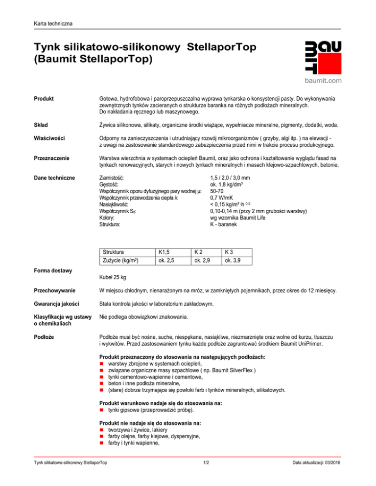 Tynk silikatowo-silikonowy StellaporTop (Baumit StellaporTop)