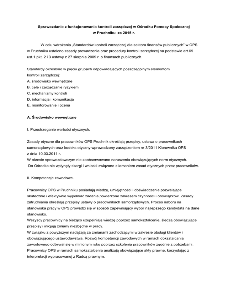 Sprawozdanie z funkcjonowania kontroli zarządczej w 2015 roku.