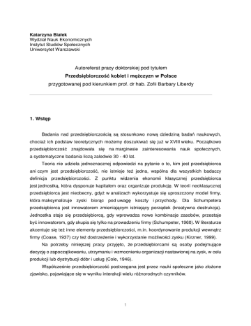 1. Wst p Autoreferat pracy doktorskiej pod tytułem Przedsi biorczo
