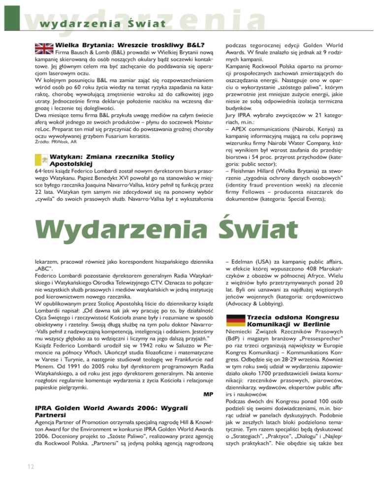 wydarzenia wydarzenia Œwiat Wielka Brytania: Wreszcie troskliwy B&L? 1T]XL-L`^NS7ZXM-7[]ZbLOeTbBTPWVTPU-]d_LYTTYZbÙ VLX[LYTí^VTP]ZbLYÙOZZ^ÇMYZ^eÙNdNSZV`WL]dMÙOŅ^ZNePbVTVZY_LV _ZbP 5PU RčÇbYdX NPWPX XL MdÛ eLNSíNLYTP OZ [ZOOLbLYTL ^Tí Z[P]L NUZX WL^P]ZbdX ZNe` B VZWPUYdX [Z^`YTíNT` -7 XL eLXTL] eLUÙÛ ^Tí ]Ze[Zb^ePNSYTLYTPX bĦ]ÇOZ^ÇM[Z!]ZV`ŇdNTLbTPOedYL_PXL_]dedVLeL[LOLYTLYLVL_L ]LV_í NSZ]ZMí bdbZč`UÙNÙ eXí_YTPYTP be]ZV` LŇ OZ NLčVZbT_PU UPRZ `_]L_d 5POYZNePĦYTP QT]XL OPVWL]`UP [ZčZŇPYTP YLNT^V` YL bNeP^YÙ OTL RYZeí T WPNePYTP _PU OZWPRWTbZĦNT /bLXTP^TÙNP_PX`QT]XL-7[]edV`čL`bLRíXPOTÇbYLNLčdXĦbTPNTP LQP]ÙbZVÇčUPOYPRZeP^bZTNS[]ZO`V_Çbw[čdY`OZ^ZNePbPV8ZT^_` ]P7ZN;]P[L]L__PYXTLč^Tí[]edNedYTLÛOZ[Zb^_LbLYTLR]ZŅYPUNSZ]ZMd ZNe`bdbZčdbLYPU R]edMPX 1`^L]T`X VP]L_T_T^ ń]ÇOčZ% ;=BPPV ,= Watykan: Zmiana rzecznika Stolicy Apostolskiej !WP_YTV^TÙOe1POP]TNZ7ZXML]OTeZ^_LčYZbdXOd]PV_Z]PXMT`]L[]L^Z bPRZBL_dVLY`;L[TPŇ-PYPOdV_CA4[ZbZčLčRZYL^_LYZbT^VZbXTPU ^NPMdčPRZ]ePNeYTVL5ZL\`TYL9LaL]]ZALWW^LV_Ç]d[PčYTč_íQ`YVNUí[]ePe WL_L BL_dVLY _dX ^LXdX YTP eOPNdOZbLč ^Tí YL [ZYZbYd bdMÇ] kNdbTWLu OZ ^bZTNS []L^ZbdNS ^č`ŇM 9LaL]]ZALWW^L Mdč e bdV^e_LčNPYTL [ZONeL^ _PRZ]ZNeYPU POdNUT 2ZWOPY BZ]WO ,bL]O^BQTYLWPeYLWLečZ^TíUPOYLVLŇ$]ZOeT XdNSVLX[LYTT 6LX[LYTí =ZNVbZZW ;ZW^VL Z[L]_Z YL []ZXZ NUT []Z^[ZčPNeYdNS eLNSZbLď eXTP]eLUÙNdNS OZ Z^eNeíOeLYTL PYP]RTT 9L^_í[`UP ZYZ b Z[L] NT` Z bdVZ]ed^_LYTP k^eÇ^_PRZ [LWTbLu V_Ç]dX []ePb]Z_YTP UP^_ XYTPU^eP e`ŇdNTP PYP]RTT ULVTP YTP^TP eP ^ZMÙ ZO[ZbTPOYTL TeZWLNUL _P]XTNeYL M`OdYVÇb 5`]d 4;=, bdM]LčZ ebdNTíeNÇb b VL_PRZ ]TLNSXTY% w ,;0C NZXX`YTNL_TZY^ 9LT]ZMT 6PYdL eL VLX[LYTí TYQZ]XLNdUYÙ XLUÙNÙ YL NPW` [Z[]Lbí bTeP]`YV` QT]Xd 9LT]ZMT BL_P] .ZX[LYd V_Ç ]PU bdYTVTPX Mdč be]Z^_ eL`QLYTL OZ []ePO^Tí MTZ]^_bLT []ZN[]ed]Z^_[]edNSZOÇbVL_P RZ]TL%[`MWTN^PN_Z]& w 1WPT^SXLY 3TWWL]O BTPWVL -]d_LYTL eL ^_bZ ]ePYTP k_dRZOYTL ZNS]ZYd OLYdNS Z^ZMZbdNSu TOPY_T_d Q]L`O []PaPY_TZY bPPV YL eWPNPYTP QT]Xd 1PWWZbP^ w []ZO`NPY_L YT^eNeL]PV OZ OZV`XPY_ÇbVL_PRZ]TL% >[PNTLW0aPY_^& Wydarzenia Œwiat WPVL]ePX []LNZbLč ]ÇbYTPŇ ULVZ VZ]P^[ZYOPY_ ST^e[Lď^VTPRZ OeTPYYTVL k,-.u 1POP]TNZ 7ZXML]OT [ZeZ^_LYTP Od]PV_Z]PX RPYP]LWYdX =LOTL BL_dVLď ^VTPRZTBL_dVLď^VTPRZ:Ħ]ZOVL?PWPbTedUYPRZ.?A:eYLNeL_Z[ZčÙNeP YTPb^ed^_VTNS^č`ŇM[]L^ZbdNSTXPOTÇbbL_dVLď^VTNSbUPOYÙTY^_d_`NUí [ZOVTP]ZbYTN_bPX YZbPRZ ]ePNeYTVL BZ[`MWTVZbLYdX[]ePe>_ZWTNí,[Z^_ZW^VÙWTĦNTPOZOeTPYYTVL]edV^TÙOe 7ZXML]OTT YL[T^Lč% k:O OLbYL _LV ULV bd []LN`Uí [Z _Z Md OeTLčLWYZĦÛ :UNLĥbTí_PRZT]ePNedbT^_ZĦÛ6ZĦNTZčLeYLYPMdčdT]Ze`XTLYPb^[Z^ÇM ZMTPV_dbYd T ]eP_PWYd >bZUÙ Oč`RÙ ^č`ŇMí YL _dX [ZW` OZV_Z] 9LaL]]Z ALWW^[PčYTčeYLOebdNeLUYÙVZX[P_PYNUÙTY_PWTRPYNUÙTZOOLYTPX5P^_PĦXd X` b^ed^Nd RčíMZVZ eL _Z bOeTíNeYT T WTNedXd YL UPRZOLW^eÙ[]edULŅďu 6^TÙOe 1POP]TNZ 7ZXML]OT `]ZOeTč ^Tí b $ ]ZV` b >LW`eeZ b ;TP XZYNTP YL [ÇčYZNd BčZNS @VZďNedč ^_`OTL QTWZeZQTNeYP T XL_PXL_dNeYP b AL]P^P T ?`]dYTP L YL^_í[YTP ^_`OTZbLč _PZWZRTí bP 1]LYVQ`]NTP YLO 8PYPX :O $$ OZ ]ZV` Mdč Od]PV_Z]PX []ZR]LXZbdX =LOTL BL_dVLď^VTPRZLZO]ZV`UP^_UPRZOd]PV_Z]PXRPYP]LWYdX9LLY_PYTP ]ZeRčZĦYT ]PR`WL]YTP VZXPY_`UP bdOL]ePYTL e ŇdNTL 6ZĦNTZčL T ]PWLNUZY`UP [L[TP^VTP [TPWR]edXVT MP IPRA Golden World Awards 2006: Wygrali Partnersi ,RPYNUL;L]_YP]ZQ;]ZXZ_TZYZ_]edXLčL^[PNULWYÙYLR]ZOí3TWW6YZbW _ZY,bL]OQZ]_SP0YaT]ZYXPY_bVZYV`]^TP4;=,2ZWOPYBZ]WO,bL]O^ ! /ZNPYTZYd []ZUPV_ _Z k>eÇ^_P ;LWTbZu ]PLWTeZbLYd []ePe LRPYNUí OWL =ZNVbZZW ;ZW^VL k;L]_YP]^Tu ^Ù UPOdYÙ [ZW^VÙ LRPYNUÙ YLR]ZOeZYÙ w 0OPWXLY @>, eL VLX[LYTí [`MWTN LQQLT]^ b PQPVNTP V_Ç]PU bd[`^eNeZYZ # 8L]ZVLď NedVÇb e ZMZeÇb b [ÇčYZNYPU ,Q]dNP BTPW` e bTíŅYTÇb MdčZ []eP_]edXdbLYdNS [ZYLO WL_ -dWT ZYT `eYLbLYT eL YLUOč`ŇPU bTíeTZYdNS UPďNÇb bZUPYYdNS VL_PRZ]TL% Z]íOZbYTN_bZ ,OaZNLNd 7ZMMdTYR Trzecia odsłona Kongresu Komunikacji w Berlinie 9TPXTPNVT EbTÙePV =ePNeYTVÇb ;]L^ZbdNS -O; T XLRLedY M]LYŇZbd k;]P^^P^[]PNSP]u [Z ]Le _]ePNT Z]RLYTe`UÙ YLUbTíV^ed b 0`]Z[TP 6ZYR]P^ 6ZX`YTVLNUT w 6ZXX`YTVL_TZY^ 6ZY R]P^^:OMíOeTP^TíZY#$b]ePĦYTL=ÇbYTPŇ b_dX]ZV`^bÇU`OeTLčbbdOL]ePYT`eL[ZbTP OeTLčZZVZčZ"[]ePO^_LbTNTPWTĦbTL_LVZX` YTVLNUT% ]ePNeYTVÇb []L^ZbdNS [TL]ZbNÇb OeTPYYTVL]edbdOLbNÇbPV^[P]_Çb[`MWTNLQQL T]^TYL`VZbNÇb ;ZONeL^ ObÇNS OYT 6ZYR]P^` [ZYLO Z^ÇM [ZOeTPWT ^Tí ^bZTXT OZĦbTLONePYTLXT XTY MTZ ]ÙN `OeTLč b [LYPWLNS Od^V`^dUYdNS ;ZOZMYTP ULV b eP^ečdNS WL_LNS MWZVT [ZOeTPWZYZ _PXL _dNeYTP?dX]LePX^[PNULWTĦNTMíOÙOd^V`_ZbLÛ Zk>_]L_PRTLNSuk;]LV_dNPuk/TLWZR`uTk9LUWP[ ^edNS []LV_dVLNSu 9TP ZMíOeTP ^Tí _LVŇP MPe wydarzenia Œwiat k>[PLVP]^YTRS_u TX[]Ped [ZONeL^ V_Ç]PU ^Ù []edeYLbLYP YLR]ZOd OWL OeTPYYTVL]ed w _eb EčZ_P 5LMčVL 8ZbdZ_bTP]LUÙNPVZYQP]PYNUíbdRčZ^eÙ%M]d _dU^VT [Z_PY_L_ XPOTZbd /LaTO 8ZY_RZXP]d bNePĦYTPU]POLV_Z]YLNePWYdk8T]]Z]2]Z`[u L ZMPNYTP eLčZŇdNTPW T []PeP^ 8P_NZX 2]Z`[ Z]Le 9TVZWL`^ -]PYOP] ^ebLUNL]^VT bdOLbNL YTPXTPNVZUíedNeYPU [`MWTNeYPU _PWPbTeUT E/1 ;]PePe -O; 7L]^ 2]Z^^V`]_S [ZO^`XZb`UP V]Ç_VZ%k6ZYR]P^6ZX`YTVLNUTb-P]WTYTPUP^_ bLŇYdX QZ]`X YTPXTPNVZUíedNeYPRZ ĦbTL_L ;=u L .L]ZWdY -]L`Y ]POLV_Z] YLNePWYL XLRLedY` k;]P^^P^[]PNSP]u OZOLUP ŇP UP^_ _Z XTPU^NP ROeTP k[LOLUÙ L]R`XPY_d T _ZNeÙ ^Tí Od^V`^UP V_Ç]P bdeYLNeLUÙ ^_LYOL]Od b VZX`YTVLNUTu RB Wielka Brytania: Koniec palenia z piarową pompą :O _PRZ WL_L BLWTL [ZbTPOeTLčL ^_LYZbNeP k940u [LWPYT` b ]P^_L`]LNULNS [`MLNS T XTPU ^NLNS []LNd EL $ _d^ Q`Y_Çb [ZXÇN BLWTUNedVZX []ed ^_Z^ZbLÛ ^Tí OZ YZbdNS eL^LO XLUÙ ObTP M]d_dU^VTP LRPYNUP ;=% .ZY^ZWTOL_PO .ZXX` YTNL_TZY^T.LXM]PY^T^BdYLUíčZUPBLWTU^VTP ER]ZXLOePYTP9L]ZOZbP 6LX[LYTL YLedbLYL YLUbTíV^edX e]dbPX TYQZ]XLNdUYdX b ST^_Z]TT XL ^eNePRÇWYTP `b]LŇWTbTÛYLMTP]YP[LWPYTPBBLWTTWTNeÙNPU MWT^VZ XTWTZYd XTP^eVLďNÇb ]ZNeYTP `XTP]L []ePe YTP MWT^VZ ZVZčZ Z^ÇM /Z eLOLď LRPYNUT YLWPŇd ^_bZ]ePYTP VZX[WPV^ZbPU ^_]L _PRTT XPOTLWYPU eL[PbYTPYTP b^[L]NTL MT`]L []L^ZbPRZ L _LVŇP []ZXZNUL ^_]ZYd TY_P]YP _ZbPU bbb^XZVTYRMLYbLWP^N