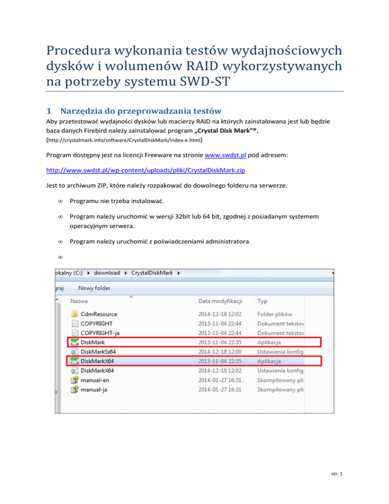 Instrukcja przeprowadzenia testów wydajności dysków - SWD-ST