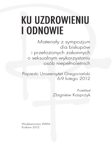 Spis treści Słowo wstępne zespołu redakcyjnego ks. Charles Scicluna, Hans Zollner SJ, David John Ayotte SJ . . . . . . . . . . 7 Przedmowa do wydania polskiego bp Marian Rojek . . . . . . . . . . . . . . . . . . . . . . . . . . . . . . . . . . . . . . . . . . . . . . . . 13 I. CZERPIĄC Z TEGO, CO W TRADYCJI NAJLEPSZE List Sekretarza Stanu Stolicy Apostolskiej do Rektora Papieskiego Uniwersytetu Gregoriańskiego . . . . . . . . . . . . . . . . . . . . . . . . . . . . . . . . . . . . 21 Okólnik Kongregacji Nauki Wiary do Konferencji Episkopatów . . . . . . . 23 II. NAUKA I KIEROWNICTWO DUSZPASTERSKIE Seksualne wykorzystywanie osób niepełnoletnich kard. William Levada . . . . . . . . . . . . . . . . . . . . . . . . . . . . . . . . . . . . . . . . . . . . 35 Leczenie ran w sercu Kościoła i społeczeństwa Marie Collins, Sheila Hollins . . . . . . . . . . . . . . . . . . . . . . . . . . . . . . . . . . . . . 47 Ucząc się na własnych błędach ks. Stephen J. Rossetti PhD DMin . . . . . . . . . . . . . . . . . . . . . . . . . . . . . . . . . 63 Dążenie do prawdy w rozpatrywaniu przypadków nadużyć seksualnych – obowiązek moralny i prawny ks. Charles J. Scicluna . . . . . . . . . . . . . . . . . . . . . . . . . . . . . . . . . . . . . . . . . . . 85 Kandydaci do kapłaństwa i do życia zakonnego bp Jorge Carlos Patrón Wong . . . . . . . . . . . . . . . . . . . . . . . . . . . . . . . . . . . . . 97 Nadużycia seksualne osób duchownych abp Luis Antonio G. Tagle . . . . . . . . . . . . . . . . . . . . . . . . . . . . . . . . . . . . . . 119 Dialog pomiędzy religią, społeczeństwem a kulturą Edenio Valle SVD . . . . . . . . . . . . . . . . . . . . . . . . . . . . . . . . . . . . . . . . . . . . . . 131 Najskuteczniejsze metody zapobiegania nadużyciom seksualnym w Kościele katolickim w republice Południowej afryki o. Desmond Nair . . . . . . . . . . . . . . . . . . . . . . . . . . . . . . . . . . . . . . . . . . . . . . . 163 Refleksje teologiczne i moralne dotyczące seksualnego wykorzystywania dzieci przez duchownych katolickich Joseph Carola SJ, Mark Rotsaert SJ, Michelina Tenace, H. Miguel Yáñez SJ . . . . . . . . . . . . . . . . . . . . . . . . . . . . . . . . . . . . . . . . . . . . . 173 Kościół, nadużycia seksualne i przywództwo pasterskie kard. Reinhard Marx . . . . . . . . . . . . . . . . . . . . . . . . . . . . . . . . . . . . . . . . . . . 193 III. WAŻNE ASPEKTY PROBLEMU NADUŻYĆ SEKSUALNYCH I SPOSOBY JEGO ZWALCZANIA Prawdziwy koszt kryzysu – rany rozdzierające serce Kościoła Michael J. Bemi . . . . . . . . . . . . . . . . . . . . . . . . . . . . . . . . . . . . . . . . . . . . . . . . 209 Internet i pornografia Gerard J. McGlone SJ . . . . . . . . . . . . . . . . . . . . . . . . . . . . . . . . . . . . . . . . . . . 227 Zapobieganie i przeciwdziałanie nadużyciom wobec dorosłych osób wymagających szczególnej troski Paul Ashton . . . . . . . . . . . . . . . . . . . . . . . . . . . . . . . . . . . . . . . . . . . . . . . . . . . 253 IV. PODSUMOWANIE. TWORZENIE INSTYTUCJI KU UZDROWIENIU I ODNOWIE Centrum na rzecz Ochrony Dzieci (Centre for Child Protection) przy Instytucie Psychologii Papieskiego Uniwersytetu Gregoriańskiego Hubert Liebhardt, Jörg Fegert, Hans Zollner . . . . . . . . . . . . . . . . . . . . . . 269 V. CZUWANIE POKUTNE Czuwanie Pokutne . . . . . . . . . . . . . . . . . . . . . . . . . . . . . . . . . . . . . . . . . . . . . . 275 Autorzy i redaktorzy (noty biograficzne) . . . . . . . . . . . . . . . . . . . . . . . . . . . 291 6