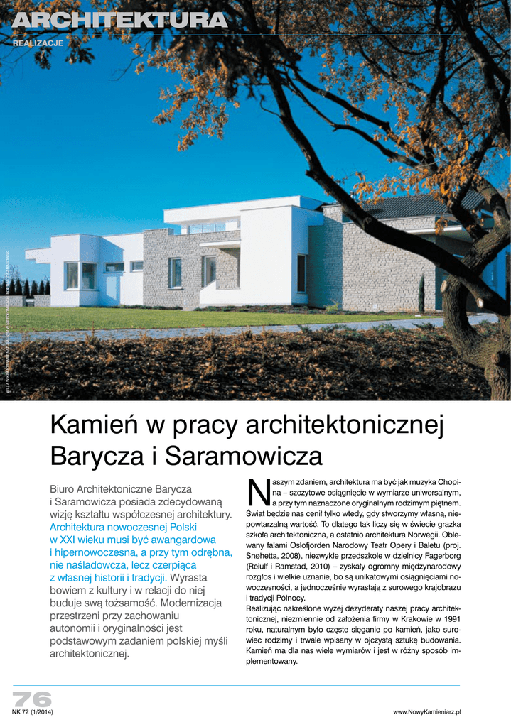 Kamień w pracy architektonicznej Barycza i Saramowicza