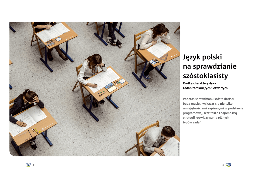 Język polski na sprawdzianie szóstoklasisty Krótka charakterystyka zadań zamkniętych i otwartych Podczas sprawdzianu szóstoklasiści będą musieli wykazać się nie tylko umiejętnościami zapisanymi w podstawie programowej, lecz także znajomością strategii rozwiązywania różnych WOJCIECH PACEWICZ/PAP typów zadań. 1 2 SPRAWDZIAN Z NOWĄ ERĄ JĘZYK POLSKI NA SPRAWDZIANIE SZÓSTOKLASISTY Budowa arkusza egzaminacyjnego W arkuszu pojawią się zadania zamknięte i otwarte. Ich liczbę i rodzaje wraz z przykładowymi rozwiązaniami Centralna Komisja Egzaminacyjna zaprezentowała w Informatorze o sprawdzianie od roku szkolnego 2014/2015 oraz w zestawie zadań Sprawdzian od roku szkolnego 2014/2015. Część 1. Język polski i matematyka. W związku z tym, że liczba zadań w każdej kolejnej edycji sprawdzianu jest inna, nie określono stałej liczby punktów możliwych do uzyskania. Szóstoklasiści otrzymują wyniki wyrażone w procentach. Zadania wielokrotnego wyboru Niektóre typy zadań są uczniom dobrze znane. Należą do nich między innymi zadania zamknięte wyboru wielokrotnego (WW), w których proponowane odpowiedzi oznaczono kolejnymi literami alfabetu: A, B, C i D. W tak skonstruowanych zadaniach należy dokonać wyboru jednej poprawnej odpowiedzi spośród czterech podanych. Sposób wypełniania karty odpowiedzi oraz dokonania ewentualnej zmiany wyboru są objaśniane na pierwszej stronie zestawu egzaminacyjnego w Instrukcji dla ucznia. Rodzaje zadań Zamknięte (liczba zadań: od 8 do 12) Otwarte (liczba zadań: od 2 do 4) Typ zadania Zadania WW sprawdzają przede wszystkim umiejętności opisane w wymaganiach ogólnych podstawy programowej w punktach I i II (zadaniami WW można także sprawdzić umiejętności z punktu III – głównie te z zakresu świadomości językowej uczniów). Temu samemu służą także inne typy zadań, na przykład prawda – fałsz lub na dobieranie, wymagające umiejętności złożonych, takich jak krytyczne myślenie, wykrywanie współzależności elementów oraz związków przyczynowo-skutkowych i funkcjonalnych. Przykładowe zadania WW Ignacy Krasicki Malarze Dwaj portretów malarze słynęli przed laty: Piotr dobry, a ubogi, Jan zły, a bogaty. Piotr malował wybornie, a głód go uciskał, Jan mało i źle robił, więcej jednak zyskał. Dlaczegoż los tak różny mieli ci malarze? Piotr malował podobne, Jan piękniejsze twarze. Ignacy Krasicki, Malarze, [w:] Poezja polskiego oświecenia. Antologia, oprac. Jan Kott, Warszawa 1956, s. 30. Zadania typu prawda – fałsz Zadanie 13. (0–1) Najczęściej zadania typu prawda – fałsz, z którymi w praktyce szkolnej spotykają się uczniowie, są zbudowane w następujący sposób: obok zdań oznajmujących lub pytających znajdują się odpowiedzi tak – nie lub prawda – fałsz. Zadanie uczniów polega na potwierdzeniu bądź zaprzeczeniu informacji zawartej w każdym stwierdzeniu lub pytaniu poprzez dokonanie wyboru właściwej odpowiedzi. Ta forma zadań jest szczególnie odpowiednia do sprawdzania znajomości treści kształcenia opartych na niepodważalnych faktach lub ścisłych założeniach. Dokończ poniższe zdanie – wybierz właściwą odpowiedź spośród podanych. Czynności ucznia Zadanie wyboru wielokrotnego (WW) Wybór poprawnej odpowiedzi spośród kilku propozycji podanych w zadaniu. Zadanie na dobieranie (D) Dobieranie wyrazów, wyrażeń, zwrotów, uzasadnień w pary według kryteriów podanych w zadaniu. Zadanie typu prawda – fałsz Ocena prawdziwości stwierdzeń. Zadanie z luką (L) Uzupełnienie zdania brakującym wyrazem, wyrażeniem, zwrotem itp. Zadanie krótkiej odpowiedzi (KO) Zapisanie rozwiązania zadania w formie zdania, kilku zdań, wyrażenia, pojedynczego słowa, symbolu, liczby. Zadanie rozszerzonej odpowiedzi (RO) Zredagowanie dłuższej wypowiedzi na zadany temat. Piotr nie wzbogacił się na malowaniu, ponieważ A. malował głównie portrety ludzi ubogich. B. wszystkie portrety malował w podobnym stylu. C. jego portrety przedstawiały ludzi takimi, jacy byli w rzeczywistości. D. na portretach celowo wyolbrzymiał ułomności ludzi, których malował. Zadanie 14. (0–1) Dokończ poniższe zdanie – wybierz właściwą odpowiedź spośród podanych. Możemy przypuszczać, że ludzie, którzy zlecali Janowi namalowanie swoich portretów, byli A. skąpi. B. chciwi. C. próżni. D. urodziwi. Zadanie 22. (0–1) Uzupełnij poniższe zdanie – wybierz właściwą odpowiedź spośród podanych. W zdaniu Drapacze chmur starano się budować najwyższym jest centrum miasta poprawną formą przysłówka w stopniu A. bardzo blisko. B.najbliżej. C.bliziutko. D.bliżej. Źródło: Informator o sprawdzianie od roku szkolnego 2014/2015, s. 30–31, 37. Typy zadań i ich proporcje w arkuszu nowego sprawdzianu 3 4 W arkuszu sprawdzianu zadania typu prawda – fałsz mogą mieć bardziej zróżnicowaną formę. W jednym z wariantów tego rodzaju zadań uczeń będzie oceniał prawdziwość dwóch podanych stwierdzeń, zaznaczając obok każdego z nich literę P (prawda) lub F (fałsz) (Przykład I). Do wyboru mogą być i JĘZYK POLSKI NA SPRAWDZIANIE SZÓSTOKLASISTY również odpowiedzi tak lub nie podane jako T i N (Przykład II). Jednak wśród przykładów prezentowanych przez CKE pojawiły się także zadania, w których uczeń wśród trzech odpowiedzi ma wskazać fałszywą (Przykład III) albo – prawdziwą (Przykład IV). Przykładowe umiejętności sprawdzane w zakresie celów ogólnych I i II I. Odbiór wypowiedzi i wykorzystanie zawartych w nich informacji – określanie tematu i głównej myśli utworu – identyfikowanie nadawcy i odbiorcy – wyszukiwanie w tekście informacji wyrażonych wprost i pośrednio – rozumienie dosłownego i przenośnego znaczenia wyrazów w wypowiedzi – wyciąganie wniosków wynikających z przesłanek zawartych w tekście – rozpoznawanie form gatunkowych – identyfikowanie tekstów informacyjny