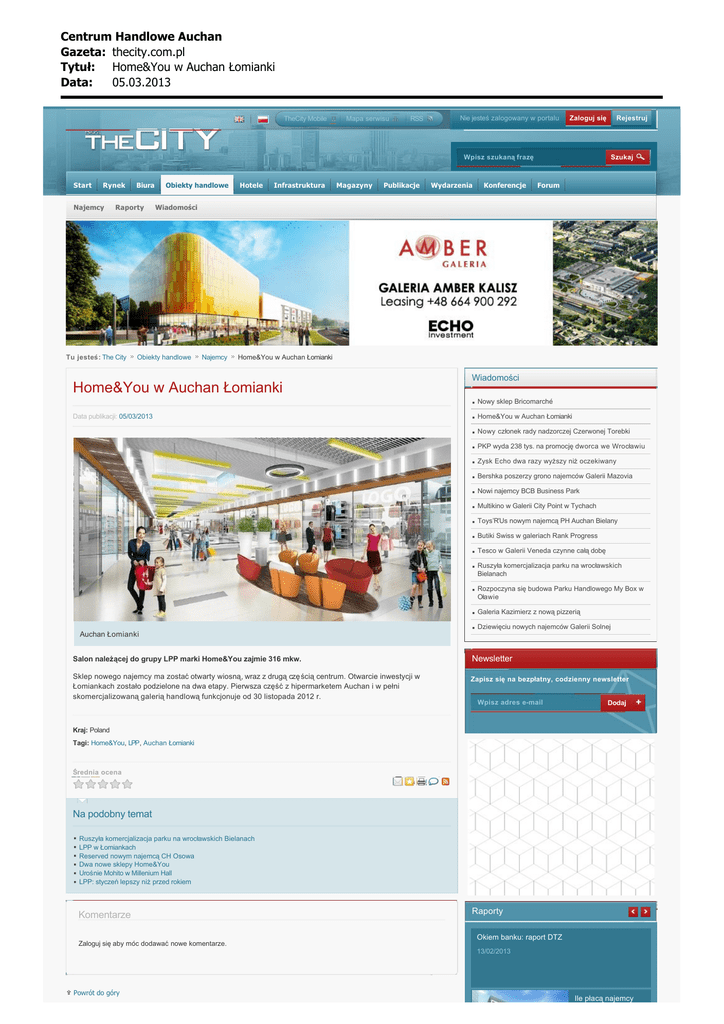 Centrum Handlowe Auchan Gazeta: thecity.com.pl Tytu³: Home&You w Auchan £omianki Data: 05.03.2013 | TheCity Mobile Mapa serwisu RSS Nie jesteś zalogowany w portalu Zaloguj się Wpisz szukaną frazę Start Rynek Najemcy Biura Raporty Obiekty handlowe Hotele Infrastruktura Magazyny Publikacje Wydarzenia Konferencje Rejestruj Szukaj Forum Wiadomości Tu jesteś: The City Obiekty handlowe Najemcy Home&You w Auchan Łomianki Wiadomości Home&You w Auchan Łomianki Nowy sklep Bricomarché Home&You w Auchan Łomianki Data publikacji: 05/03/2013 Nowy członek rady nadzorczej Czerwonej Torebki PKP wyda 238 tys. na promocję dworca we Wrocławiu Zysk Echo dwa razy wyższy niż oczekiwany Bershka poszerzy grono najemców Galerii Mazovia Nowi najemcy BCB Business Park Multikino w Galerii City Point w Tychach Toys’R’Us nowym najemcą PH Auchan Bielany Butiki Swiss w galeriach Rank Progress Tesco w Galerii Veneda czynne całą dobę Ruszyła komercjalizacja parku na wrocławskich Bielanach Rozpoczyna się budowa Parku Handlowego My Box w Oławie Galeria Kazimierz z nową pizzerią Dziewięciu nowych najemców Galerii Solnej Auchan Łomianki Salon należącej do grupy LPP marki Home&You zajmie 316 mkw. Newsletter Sklep nowego najemcy ma zostać otwarty wiosną, wraz z drugą czę ścią centrum. Otwarcie inwestycji w Łomiankach zostało podzielone na dwa etapy. Pierwsza część z hipermarketem Auchan i w pełni skomercjalizowaną galerią handlową funkcjonuje od 30 listopada 2012 r. Zapisz się na bezpłatny, codzienny newsletter Wpisz adres e-mail Dodaj Kraj: Poland Tagi: Home&You, LPP, Auchan Łomianki Średnia ocena Na podobny temat Ruszyła komercjalizacja parku na wrocławskich Bielanach LPP w Łomiankach Reserved nowym najemcą CH Osowa Dwa nowe sklepy Home&You Urośnie Mohito w Millenium Hall LPP: styczeń lepszy niż przed rokiem Komentarze Zaloguj się aby móc dodawać nowe komentarze. Raporty Okiem banku: raport DTZ 13/02/2013 Powrót do góry Ile płacą najemcy Centrum Handlowe Auchan Gazeta: thecity.com.pl Tytu³: Home&You w Auchan £omianki Data: 05.03.2013 powierzchni biurowej - Raport DTZ 05/02/2013 Giełda i Waluty Kursy walut NBP 2013-03-04 USD 3,1837 +0,21% EUR 4,1350 -0,20% CHF 3,3737 -0,32% GBP 4,7815 +0,23% Giełda GPW (2013-03-05 10:53) WIG 46406.79 +0,58% WIG20 2459.59 +0,85% mWIG40 2622.34 -0,04% sWIG80 10999.51 +0,01% biura BOIG Property Consulting CBRE centra handlowe centrum handlowe Colliers International Cushman & Wakefield DTZ Echo Investment galeria handlowa Gdańsk Gliwice GTC Jones Lang LaSalle Katowice Kraków LPP Lublin magazyny Millenium Hall najemcy Poznań Rank Progress Raport Reserved Rzeszów Silesia City Center Warszawa Najpopularniejsze Wrocła w Łódź Najwyżej oceniane Factory Annopol rusza w marcu Nowy Sezam coraz bliżej. Budowa w IV kwartale Ruszyła budowa mieszkaniówki w Koneserze Echo Investment na MIPIM Seria awansów w CBRE Przesunięcie otwarcia galerii Bawełnianka Auchan Łomianki już otwarty. Wiosną rusza druga część Specjaliści od nieruchomości poszukiwani Plac Unii: część handlowa w 75 proc. wynajęta Budowa nowego wieżowca na Woli ruszy w połowie 2013 r. The City O serwisie Regulamin Polityka prywatnościi Reklama www.wcentrum.pl Kontakt Property Media Group s.c. ul. Stępińska 22/30 00-739 Warszawa Formularz kontaktowy Copyright (c) 2011 The City | All rights reserved | Polityka prywatności tel. +48 22 841 31 52 tel. +48 22 851 03 05 tel./fax +48 22 840 65 21 NIP 5213543170 REGON 142022595