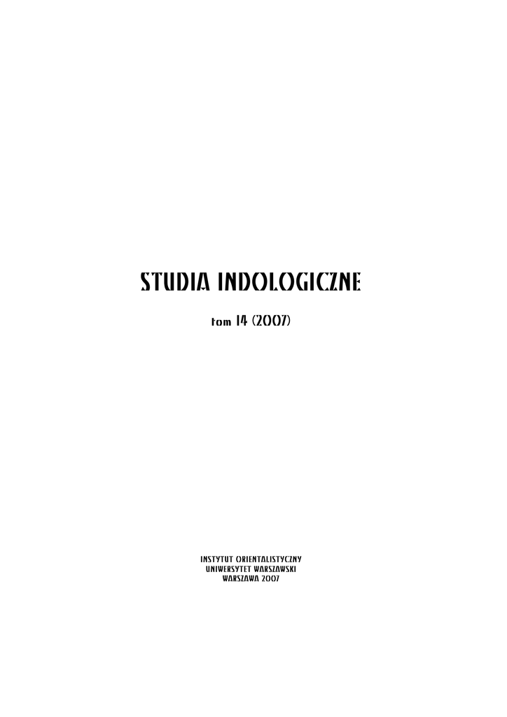 STUDIA INDOLOGICZNE tom 14 (2007) INSTYTUT ORIENTALISTYCZNY UNIWERSYTET WARSZAWSKI WARSZAWA 2007 KOMITET REDAKCYJNY Marek Mejor (redaktor naczelny) Piotr Balcerowicz (z-ca redaktora naczelnego) Anna Trynkowska Monika Nowakowska UWAGA: Informacje dla autorów, zawieraj¹ce zasady edytorskie stosowane w Studiach Indologicznych, znajduj¹ siê na koñcu numeru na stronach 125–128. Copyright © by Redakcja Studiów Indologicznych ADRES REDAKCJI Instytut Orientalistyczny Uniwersytet Warszawski Krakowskie Przedmieœcie 26/28 00–927 Warszawa sk³ad komputerowy, czcionki: Piotr Balcerowicz © projekt ok³adki: Piotr Balcerowicz Druk i oprawa: Zak³ad Graficzny Uniwersytetu Warszawskiego Zam. /2007 ISSN 1232–4663 SPIS TREŒCI ANDRZEJ BABKIEWICZ: Indyjska horoskopia urodzeniowa na przyk³adzie tekstu Bryhatparasiarahory (Båhat-pârâœara-horâ) . . . . . . . . . . . . . . . . . . . . . . . . . . . . 5 BARBARA GRABOWSKA [in English]: The Bhâgavata-purâòa tradition in Bengal . . . . . . . . . . . . . . . . . . . . . . .. . . . . . 59 • Z DZIEJÓW INDOLOGII . . . . . . . . . . . . . . . . . . . . . . . . . . . . . . . . . . . . . . . . . . . . . .78–104 TADEUSZ SUCHOCKI: ¯ycie i twórczoœæ naukowa Leona Cyborana . . . . . . . . . . . . . . . . . . . . . .. . . . . . 78 Dodatek: LEON CYBORAN: Sanskryt filozoficzny . . . . . . . . . . . . . . . . . . . . . . . . . . . . . . . . . . . . . . . .. . . . . .100 Sanskryt na wydzia³ach filozoficznych . . . . . . . . . . . . . . . . . . . . . . . . . . . . . . . .102 • RECENZJE – REVIEW ARTICLES – BUCHBESPRECHUNGEN . . . . . . . . . . . . . . . . .105–120 WILLEM BOLLÉE [auf Deutsch]: Ulrike Roesler, Jayandra Soni, Luitgard Soni, Roland Steiner, Martin Straube: Bhagavadajjukam. Die Heiligen-Hetäre. Eine indische Yogakomödie . . . . . . . . . . . . . . . . . . . . . .105 EMILIA SU£EK: Donald S. Lopez Jr.: The Madman’s Middle Way. Reflections on Reality of the Tibetan Monk Gendun Chophel . . . . . . . . . . . . .106 JACEK WOŹNIAK [in English]: Eva Wilden: Literary Techniques in Old Tamil Caókam Poetry. The Kuýuntokai . . . . . . . . . . . . . . . . . . . . . . . . . . . . . . . . . . . . . . . . . . . . . . . . .112 • SPRAWOZDANIA . . . . . . . . . . . . . . . . . . . . . . . . . . . . . . . . . . . . . . . . . . . . . . . . .121–124 DANUTA STASIK: III Boñsko-Warszawskie Warsztaty Jêzyka Hindi . . . . . . . . . . . . . . . . . . . . . . . 121 MONIKA NOWAKOWSKA: IV Miêdzynarodowe Letnie Warsztaty Sanskrytu . . . . . . . . . . . . . . . . . .. . . . . 121 MONIKA NOWAKOWSKA: Warsztaty inskrypcyjne „S³awi¹c w kamieniu imiê króla” . . . . . . . . . . . . . . . . 122 ANNA TRYNKOWSKA: Miêdzynarodowe Seminarium „Kings and Ascetics in Indian Classical Literature” . . . . . . . . . . . . . . . . . . . . . . 123 • DLA AUTORÓW Zasady edycji stosowane w Studiach Indologicznych . . . . . . . . . . . . . . . 125–128 Indyjska horoskopia urodzeniowa na przyk³adzie tekstu Bryhatparasiarahory ANDRZEJ BABKIEWICZ W niniejszym artykule pokrótce omawiam historiê rozwoju indyjskiej astrologii prognostycznej z uwzglêdnieniem jej korzeni i wp³ywów spoza subkontynentu. Wymieniam te¿ g³ówne teksty, które kszta³towa³y charakter indyjskiej horoskopii urodzeniowej (okreœlaj¹cej osobowoœæ i losy jednostki na podstawie momentu jej narodzin), i przedstawiam miejsce astrologii w tradycji indyjskiej. Jako dodatek (s. 23 i nn.) i uzupe³nienie artyku³u za³¹czam t³umaczenie kluczowych fragmentów Wielkiej horoskopii Parasiary (Båhat-pârâœara-horâ), popularnego tekstu astrologicznego pochodz¹cego z VI w. Na koñcu (s. 51 i nn.) zamieszczam s³owniczek najwa¿niejszych pojêæ astrologicznych pojawiaj¹cych siê w niniejszym artykule. Jyotiša, jedna z najobszerniej omawianych ga³êzi wiedzy w literaturze sanskryckiej, obejmuje matematykê, astronomiê i astrologiê prognostyczn¹. Podczas gdy dwie pierwsze, ze wzglêdu na swój œcis³y charakter, od pocz¹tku przyci¹ga³y uwagê indologów, astrologia wydaje siê wci¹¿ pozostawaæ obszarem stosunkowo ma³o zbadanym naukowo. Podrêczniki literatury poœwiêcaj¹ jej niewiele miejsca: np. KEITH (1928: 516–535) opisuje ca³y dzia³ na 35 stronach, z czego nieca³e 4 dotycz¹ astrologii; WINTERNITZOWI (1963: 679–703) przedstawienie astronomii, astrologii i matematyki zajmuje 24 strony, w tym 6 poœwiêca astrologii; u MYLIUSA (2004: 241–247) 6 stron to opis ca³ego zagadnienia, w tym pó³torej strony dotyczy astrologii. Jeœli ju¿ temat jest poruszany, autorzy najczêœciej ograniczaj¹ siê do wymienienia g³ównych dzie³ lub przedstawienia rysu historycznego, pomijaj¹c techniki prognostyczne. Czêsto te¿ odnosz¹ siê do tematu z rezerw¹ i podwa¿aj¹ celowoœæ zajmowania siê dzia³em piœmiennictwa pe³nego przes¹dów. Wielkie zas³ugi w badaniu tekstów astrologicznych ma David Pingree, który, obok analizy historycznej rozwoju myœli astrologicznej, w wielu swych dzie³ach przedstawi³ streszczenia tekstów i porównywa³ ich zawartoœæ 1. 1 PINGREE (1981: 81–100). Ca³y pi¹ty rozdzia³, zatytu³owany „Genethlialogy”, poœwiêcony jest dzie³om astrologii urodzeniowej. W jêzyku polskim por. pracê: KARP (2001). Studia Indologiczne 14 (2007) 5–58. Copyright © by Redakcja Studiów Indologicznych 6 STUDIA INDOLOGICZNE NR 14 (2007) Sporym problemem dla badacza jest nie tylko brak fachowych opracowañ tematu, ale równie¿ ograniczony dostêp do poprawnie zredagowanych tekstów Ÿród³owych. Dzie³a sanskryckie i ich t³umaczenia dostêpne na indyjskim rynku ksiêgarskim najczêœciej maj¹ charakter przydatnych podrêczników, w których historyczne praktyki astrologiczne mieszaj¹ siê z ich wspó³czesnymi interpretacjami. Najczêœciej dzie³a s¹ t³umaczone i wydawane przez osoby zajmuj¹ce siê astrologi¹, dziêki czemu stanowi¹ cenne Ÿród³o informacji o praktycznym zrozumieniu tekstów, jednak ich wartoœæ naukowa nie jest