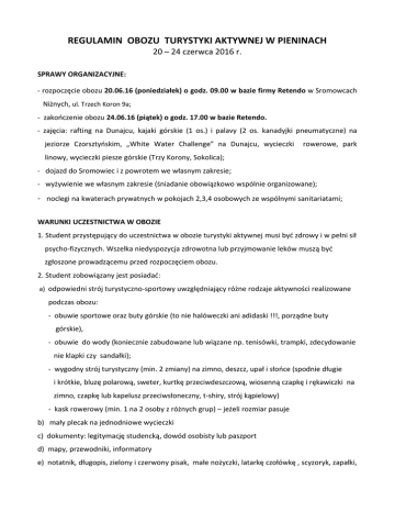 REGULAMIN OBOZU TURYSTYKI AKTYWNEJ W PIENINACH