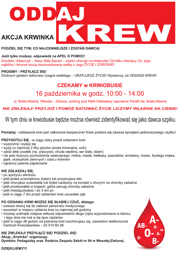 W tym dniu w krwiobusie bêdzie mo¿na równie¿ zidentyfikowaæ siê jako dawca szpiku.