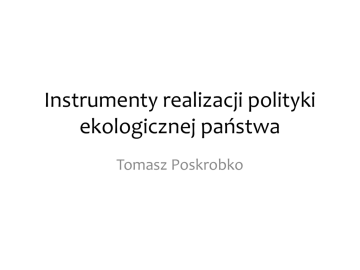 Instrumenty realizacji polityki ekologicznej państwa Tomasz Poskrobko Nakazy i zakazy Instrumenty realizacji polityki ekologicznej Normy (standardy) Instrumenty prawnoadministracyjne Bezpośrednie Pozwolenia emisyjne Administracyjne procedury Instrumenty ekonomiczne Pośrednie Instrumenty dobrowolnego stosowania Instrumenty społecznego oddziaływania Pozwolenia eksploatacyjnoreglamentacyjne Nakazy i zakazy Instrumenty realizacji polityki ekologicznej Normy (standardy) Instrumenty prawnoadministracyjne Bezpośrednie Pozwolenia emisyjne Administracyjne procedury Instrumenty ekonomiczne Pośrednie Instrumenty dobrowolnego stosowania Instrumenty społecznego oddziaływania Pozwolenia eksploatacyjnoreglamentacyjne Instrumenty prawnoadministracyjne • ustanowione przez prawodawcę (mocą aktów prawnych) ograniczenia działania lub sposoby postępowania, • ich celem jest – regulacja korzystania ze środowiska – zapewnienie jego ochrony, • mają bezpośredni wpływ na zachowanie podmiotów gospodarczych. • ich działanie jest poparte odpowiednimi sankcjami prawnymi. Nakazy i zakazy Instrumenty realizacji polityki ekologicznej Normy (standardy) Instrumenty prawnoadministracyjne Bezpośrednie Pozwolenia emisyjne Administracyjne procedury Instrumenty ekonomiczne Pośrednie Instrumenty dobrowolnego stosowania Instrumenty społecznego oddziaływania Pozwolenia eksploatacyjnoreglamentacyjne Nakazy i zakazy • zakazy dotyczą głównie – przemysłowej emisji związków niebezpiecznych dla środowiska i zdrowia człowieka (np. związki arsenu, dioksyny), – stosowania technologii niebezpiecznych dla środowiska, – uruchomienia zakładu bez odpowiednich urządzeń ochronnych – wolnego wstępu na teren ścisłego rezerwatu przyrody. – Strefowanie • Nakazy mogą dotyczyć, na przykład: – ograniczenia produkcji ze względu na nadmierną emisję zanieczyszczeń, – zamknięcia zakładu ze względu na jego uciążliwość dla ludzi i środowiska, – zastosowania urządzeń ochronnych, – wdrożenia określonej procedury sporządzania oceny oddziaływania na środowisko Nakazy i zakazy Instrumenty realizacji polityki ekologicznej Normy (standardy) Instrumenty prawnoadministracyjne Bezpośrednie Pozwolenia emisyjne Administracyjne procedury Instrumenty ekonomiczne Pośrednie Instrumenty dobrowolnego stosowania Instrumenty społecznego oddziaływania Pozwolenia eksploatacyjnoreglamentacyjne Imisji Właściwego postępowania Emisji Normy Produktowe Technologicznotechniczne Imisji Właściwego postępowania Emisji Normy Produktowe Technologicznotechniczne Normy imisji • wymagania, które muszą być spełnione w określonym czasie przez środowisko lub jego główne elementy na danym obszarze. • określają maksymalne, dopuszczalne stężenia substancji zanieczyszczających w środowisku • Mogą one być zróżnicowane w zależności od obszarów. Normy imisji • Standardy jakości powietrza pod kątem rocznej oceny jakości powietrza: – dopuszczalne - poziom substancji, który ma być osiągnięty w określonym terminie i który po tym terminie nie powinien być przekraczany (m.in. SO2, NO2, CO, benzen, PM10 + Pb, PM2,5) – docelowe - jest to poziom substancji, który ma być osiągnięty w określonym czasie za pomocą ekonomicznie uzasadnionych działań technicznych i technologicznych (m. in. O3, PM2,5, As, Ni, Cd, benzo(a)piren) – długoterminowe - poziom substancji, poniżej którego, zgodnie ze stanem współczesnej wiedzy, bezpośredni szkodliwy wpływ na zdrowie ludzi lub środowisko jako całość jest mało prawdopodobny; poziom ten ma być osiągnięty w długim okresie czasu (O3) – alarmowe Normy imisji • Standardy jakości gleb – glebę uznaje się za zanieczyszczoną, gdy stężenie co najmniej jednej substancji przekracza wartość dopuszczalną – Standardy jakości gleby lub ziemi, uwzględniają ich aktualne i planowane funkcje użytkowania • Grupa A – grunty na obszarach chronionych • Grupa B – grunty rolne i leśne, nieużytki oraz grunty zurbanizowane • Grupa C tereny przemysłowe, użytki kopalne, tereny komunikacyjne Normy imisji • Standardy jakości wód (w tym wody pitnej) – wyróżnia się standardy wód powierzchniowych, wód podziemnych oraz wody pitnej – wyróżniają stan ekologiczny i chemiczny, a w przypadku wód podziemnych stan ilościowy i chemiczny, przy czym stan ogólny określony jest przez gorszy z nich. Imisji Właściwego postępowania Emisji Normy Produktowe Technologicznotechniczne Normy emisji • Celem norm emisyjnych jest ograniczenie ilości wydalanych zanieczyszczeń według ich rodzaju do poziomu umożliwiającego naturalną asymilację przez ekosystemy. • Dzielą się na: – indywidualnie – powszechnie • Dotyczą instalacji i urządzeń • Dotyczą zanieczyszczeń materialnych i niematerialnych Imisji Właściwego postępowania Emisji Normy Produktowe Technologicznotechniczne Normy techniczno-technologiczne • określają rodzaj i maksymalną ilość zanieczyszczeń, które mogą powstać w danym procesie produkcyjnym lub podczas użytkowania danego urządzenia • najlepsze dostępne technologie (BAT): – dokumenty referencyjne BAT (tzw. BREF-y) opracowywane przez Europejskie Biuro IPPC w Sewilli; – poradniki branżowe opracowywane na zlecenie Ministerstwa Środowiska – dokumenty referencyjne narodowych agencji ochrony środowiska, Banku Światowego, OECD, stowarzyszeń branżowych – opracowania i publikacje naukowo-techniczne; – ekspertyzy • EURO Imisji Właściwego postępowania Emisji Normy Produktowe Technologicznotechniczne Normy produktowe • określają proekologiczne cechy lub parametry produktu, którego zużycie lub użycie może być uciążliwe dla człowieka lub środowiska. Są one ściśle związane z jakością produktu • Normy produktowe określają: – fizyczny lub chemiczny skład produktu, – procedury postępowania z produktem, jego pakowania i oznako