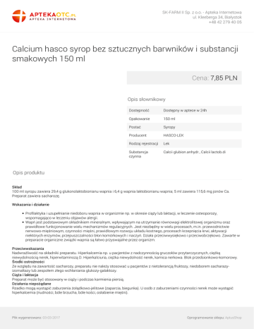 Calcium hasco syrop bez sztucznych barwników i substancji