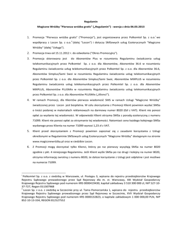 współpracy z Locon Sp. z o.o. (dalej "Locon") i dotyczy SMSowych usług Ezoterycznych "Magiczne