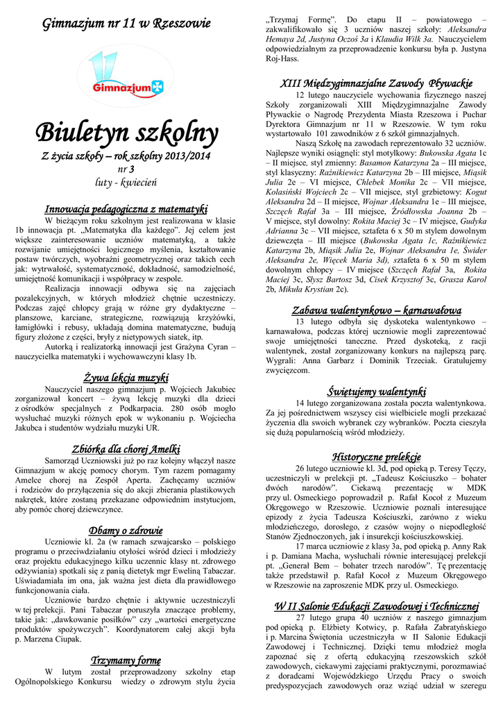 Biuletyn – rok szkolny 2013/2014 – nr 3