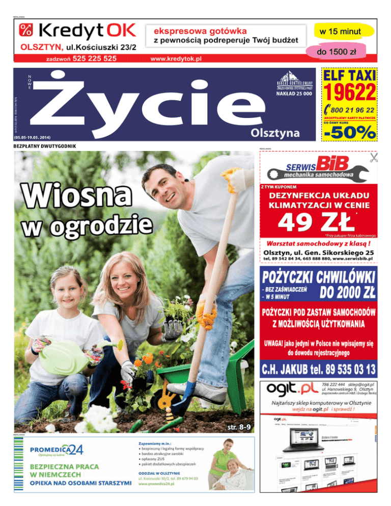 REKLAMA nr 9 (132) 2014 ISSN 1734-7076 NOWE Życie (05.05-19.05. 2014) BEZPŁATNY Dwutygodnik REKLAMA NAKŁAD 25 000 Olsztyna REKLAMA 2 Z olsztyna “Nowe Życie Olsztyna” nr 9 (132) 2014 Osiedliska Kultury Przedsmakiem Olsztyńskiego Lata Artystycznego mają być Osiedliska Kultury, czyli cykl atrakcji dla najmłodszych, a także ich rodziców. Różnorodne przedstawienia, pokazy, gry, zabawy, przeglądy lokalnych talentów i turnieje będą odbywały się od 10 maja do 29 czerwca na Jarotach, Nagórkach, Pieczewie, Jakubowie, osiedlu Mazurskim i Dajtkach. Oto skrócony plan tych imprez: 10 maja (sobota) – Jaroty, plac u zbiegu ul. Wilczyńskiego i ul. Janowicza, godz. 12-16, 17 maja (sobota) – 35 lat Spółdzielni Mieszkaniowej Jaroty, plac przed SM Jaroty, godz. 12-16, 18 maja (niedziela) – park Jakubowo, III Festyn Rodzinny w Jakubowie, godz. 12-21, 24 maja (sobota) – Pieczewo, Gimnazjum nr 13, festyn „Dni rodziny”, godz. 12-16, 25 maja (niedziela) – osiedle Mazurskie, plac Mazurski, godz. 12-16, 14 czerwca (sobota) – Dajtki, SP nr 18, festyn rodzinny „Bezpieczni – Ja, Ty, My”. Bezpieczne Wakacje, godz. 10-14, 29 czerwca (niedziela) – amfiteatr im. Czesława Niemena, Wielki Finał Osiedlisk Kultury, godz. 18. Niech ktoś spróbuje powiedzieć, że w Olsztynie nic się nie dzieje! W maju jest mnóstwo imprez: Kortowiada, festiwal filmowy, festyny, wystawy i wiele innych. Unijne sosenki Z okazji 10-lecia wstąpienia Polski do Unii Europejskiej leśnicy z Regionalnej Dyrekcji Lasów Państwowych rozdali olsztynianom tysiąc sadzonek królowej naszych lasów – sosny zwyczajnej, wyhodowanej w szkółce kontenerowej w Olsztynku. Ale na nagrodę trzeba było zasłużyć, czyli znaleźć się w jednym z 10 miejsc, które zmieniły się dzięki współpracy z Unią Europejską. Kto z Państwa zna takie miejsca? W naszym mieście jest ich więcej niż 10. Festiwalowy Olsztyn w telewizji Od 16 do 17 maja odbędzie się Festiwal Telewizyjnych Filmów Sportowych w Olsztynie. To istny maraton filmowej twórczości telewizyjnej związanej ze sportem i dziennikarstwem sportowym. Znani sportowcy i dziennikarze spotkają się też z kibicami, sportowcami, młodzieżą szkolną i akademicką. Przebieg festiwalu będą relacjonowały liczne stacje Telewizji Polskiej. Impreza zacznie się już w czwartek, 15 maja, m.in. od otwarcia wystawy zorganizowanej z Muzeum Sportu PKOI pt. „Olimpijskie konkursy sztuk”, autorstwa prof. Wojciecha Zabłockiego i Richarda Stantona. Od piątku, 16 maja, będą odbywały się projekcje w kinie Helios. Ponadto zostaną zorganizowane w różnych miejscach liczne panele dyskusyjne i spotkania z twórcami filmów. Warto śledzić bieżące informacje w gazetach i telewizji. Żołnierski związek ze sztandarem Na placu Konsulatu Polskiego, pod kolumną Orła Białego 3 maja odbyła się wielka uroczystość patriotyczno-wojskowa. Głównym punktem było przekazanie nowego sztandaru zarządowi wojewódzkiemu Związku Żołnierzy Wojska Polskiego w Olsztynie przez społeczny Komitet Honorowy Fundatorów na czele z wojewodą Marianem Podziewskim i marszałkiem województwa Jackiem Protasem. Rodzicami chrzestnymi sztandaru byli: Hanna Mikulska-Bojarska – sekretarz miasta, prywatnie żona oficera WP, oraz były wojewoda i senator Janusz Lorenz, który przewodniczył też Komitetowi Budowy Kolumny Orła Białego. W tym dniu komitet, po 17 latach działalności, oficjalnie zakończył swoją działalność, przekazując kolejne tablice upamiętniające ludzi i ważne wydarzenia. Szersza relacja z uroczystości znajduje się na naszej stronie internetowej: www.zycieolsztyna.pl. Fryzjerzy lepsi od sportowców Olsztyńscy fryzjerzy nadal w krajowej czołówce. Podczas 22. Otwartych Mistrzostw Fryzjerstwa Polskiego w Poznaniu trzy razy stanęli na najwyższym stopniu. Złoty medal w kategorii „senior męski” zdobył Adam Ziejewski, a w kategorii „junior męski” – Emilia Śliwa i Jacek Chamera. Nasi byli najlepsi w modelowaniu klasycznym mężczyzn. Gratulujemy. Roboty w laboratorium W Olsztyńskim Parku Naukowo-Technologicznym pokazano, jak wyglądają i co potrafią roboty. Wystawa „Robo-labolatorium” cieszyła się powodzeniem olsztynian, bo za darmo można było zapoznać się z nowoczesną techniką. Pokazano m.in. największego w Polsce robota strzelającego z działa powietrznego, naukowe iluzje, czyli bańki z lodu, łóżko fakira, znikającą wodę, bezpieczne i efektowne doświadczenia naukowe, np. możliwość samodzielnego zrobienia wybuchu kolorowego wulkanu lub eliksiru zmieniającego kolor. Odbyły się także warsztaty sklejania z papieru i wystrzelania rakietek w przestworza. Brawo, jak najwięcej takich imprez! Radio pod naukowym nadzorem W czerwcu kończy się kadencja dotychczasowej rady nadzorczej Polskiego Radia Olsztyn, więc wybrano już większość jej nowych członków. Decyzją Krajowej Rady Radiofonii i Telewizji zostali nimi: ponownie – Czesław Hołdyński (biolog, prof. na UWM), Krzysztof Krukowski (ekonomista z UWM), Bogumił Osiński (były szef ośrodka TVP w Gdańsku, filmowiec i aktualny doradca wojewody) oraz po raz pierwszy – Sylwia Stachowska (naukowiec UWM). Piątą osobę wskaże minister skarbu państwa w porozumieniu z ministrem kultury i dziedzictwa narodowego. Mamy nadzieję, że minister uzupełni radę o drugiego fachowca zajmującego się dziennikarstwem. Droga dla śmieci W pobliżu toru motocrossowego przy ul. Lubelskiej rozpoczęła się budowa drogi dojazdowej do przyszłego Zakładu Unieszkodliwiania Odpadów w Olsztynie. Jest to początek realizacji wielkiego międzygminnego projektu „System za- gospodarowania odpadów komunalnych w Olsztynie”, który przed kilkoma latami wzbudzał tak wiele kontrowersji. ZUO w Olsztynie ma powstać w rejonie Tracka, w oparciu o technologię mechaniczno-biologicznego przetwarzania odpadów komunalnych z odzyskiem materiałowym, natomiast w tere