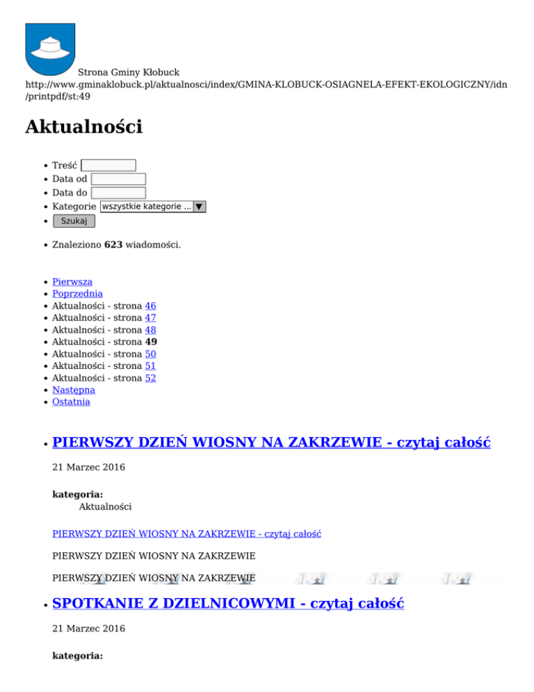 Strona Gminy Kłobuck http://www.gminaklobuck.pl/aktualnosci/index/GMINA-KLOBUCK-OSIAGNELA-EFEKT-EKOLOGICZNY/idn /printpdf/st:49 Aktualności Treść Data od Data do Kategorie wszystkie kategorie ... ▼ Szukaj Znaleziono 623 wiadomości. Pierwsza Poprzednia Aktualności - strona 46 Aktualności - strona 47 Aktualności - strona 48 Aktualności - strona 49 Aktualności - strona 50 Aktualności - strona 51 Aktualności - strona 52 Następna Ostatnia PIERWSZY DZIEŃ WIOSNY NA ZAKRZEWIE - czytaj całość 21 Marzec 2016 kategoria: Aktualności PIERWSZY DZIEŃ WIOSNY NA ZAKRZEWIE - czytaj całość PIERWSZY DZIEŃ WIOSNY NA ZAKRZEWIE PIERWSZY DZIEŃ WIOSNY NA ZAKRZEWIE SPOTKANIE Z DZIELNICOWYMI - czytaj całość 21 Marzec 2016 kategoria: Aktualności SPOTKANIE Z DZIELNICOWYMI - czytaj całość SPOTKANIE Z DZIELNICOWYMI SPOTKANIE Z DZIELNICOWYMI INFORMACJA GŁÓWNEGO URZĘDU STATYSTYCZNEGO czytaj całość 18 Marzec 2016 kategoria: Aktualności INFORMACJA GŁÓWNEGO URZĘDU STATYSTYCZNEGO - czytaj całość INFORMACJA GŁÓWNEGO URZĘDU STATYSTYCZNEGO INFORMACJA GŁÓWNEGO URZĘDU STATYSTYCZNEGO INFORMACJA CENTRUM OPERACYJNO-ANALITYCZNEGO czytaj całość 17 Marzec 2016 kategoria: Aktualności INFORMACJA CENTRUM OPERACYJNO-ANALITYCZNEGO - czytaj całość INFORMACJA CENTRUM OPERACYJNO-ANALITYCZNEGO INFORMACJA CENTRUM OPERACYJNO-ANALITYCZNEGO ZAPISY NA KURSY - czytaj całość 17 Marzec 2016 kategoria: Aktualności ZAPISY NA KURSY - czytaj całość ZAPISY NA KURSY ZAPISY NA KURSY INFORMACJA - czytaj całość 17 Marzec 2016 kategoria: Aktualności INFORMACJA - czytaj całość INFORMACJA INFORMACJA I FORUM MAŁYCH I ŚREDNICH PRZEDSIĘBIORSTW POWIATU KŁOBUCKIEGO - czytaj całość 16 Marzec 2016 kategoria: Aktualności I FORUM MAŁYCH I ŚREDNICH PRZEDSIĘBIORSTW POWIATU KŁOBUCKIEGO - czytaj całość I FORUM MAŁYCH I ŚREDNICH PRZEDSIĘBIORSTW POWIATU KŁOBUCKIEGO I FORUM MAŁYCH I ŚREDNICH PRZEDSIĘBIORSTW POWIA INFORMACJA PWiK - czytaj całość 16 Marzec 2016 kategoria: Aktualności INFORMACJA PWiK - czytaj całość INFORMACJA PWiK INFORMACJA PWiK SOCZYSTE JABŁKA TRAFIŁY DO UCZNIÓW - czytaj całość 16 Marzec 2016 kategoria: Aktualności SOCZYSTE JABŁKA TRAFIŁY DO UCZNIÓW - czytaj całość SOCZYSTE JABŁKA TRAFIŁY DO UCZNIÓW SOCZYSTE JABŁKA TRAFIŁY DO UCZNIÓW PRZEBUDOWA LINII ELEKTROENERGETYCZNYCH - czytaj całość 15 Marzec 2016 kategoria: Aktualności PRZEBUDOWA LINII ELEKTROENERGETYCZNYCH - czytaj całość PRZEBUDOWA LINII ELEKTROENERGETYCZNYCH PRZEBUDOWA LINII ELEKTROENERGETYCZNYCH Pierwsza Poprzednia Aktualności - strona 46 Aktualności - strona 47 Aktualności - strona 48 Aktualności - strona 49 Aktualności - strona 50 Aktualności - strona 51 Aktualności - strona 52 Następna Ostatnia