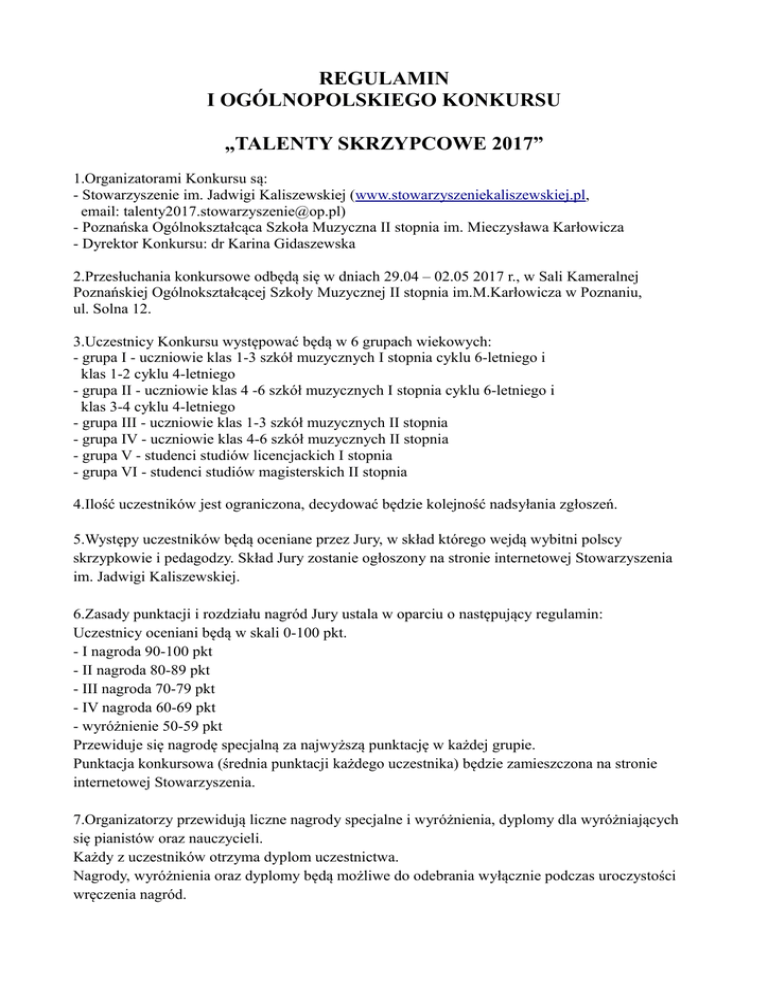regulamin i ogólnopolskiego konkursu „talenty skrzypcowe 2017”