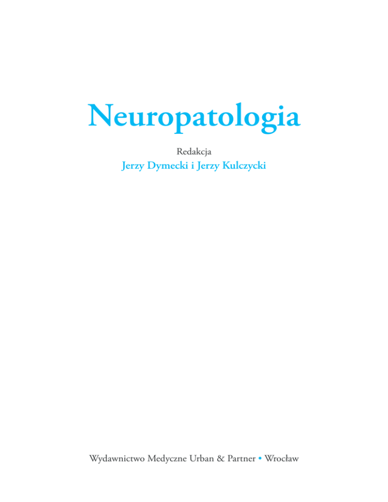Neuropatologia Redakcja Jerzy Dymecki i Jerzy Kulczycki Wydawnictwo Medyczne Urban & Partner • Wrocław Przedmowa Mija osiem lat od chwili ukazania się naszej Neuropatologii klinicznej wydanej przez Instytut Psychiatrii i Neurologii, książki, która wypełniła, z mniejszym lub większym powodzeniem, pustkę na polskim rynku księgarskim po bardzo dobrym podręczniku pt. Podstawy neuropatologii pod redakcją M. Mossakowskiego, J. Dymeckiego i M. Wendera z roku 1981. I znowu, od kilku już lat, słyszymy narzekania, że specjalizujący się neurolodzy, neurochirurdzy i patomorfolodzy nie mają się z czego uczyć neuropatologii. A ich możliwości studiów w tym zakresie, od dawna dość ograniczone, kurczą się z każdym rokiem, ponieważ liczba godzin na kursach podyplomowych – poświęconych patomorfologii układu nerwowego – ulega systematycznemu zmniejszeniu przez CKMP, co zupełnie nie idzie w parze z bardzo wysokimi wymaganiami egzaminacyjnymi. W tej sytuacji postanowiliśmy, po zasięgnięciu opinii czołowych polskich neuropatologów i neurologów, podjąć się wydania nowego podręcznika. Decyzja ta została dodatkowo wzmocniona świadomością bardzo dynamicznie rozwijającej się wiedzy neuropatologicznej oraz postępu technik badawczych stosowanych w tej dziedzinie medycyny. Grono autorów wspomnianej Neuropatologii klinicznej poparło z dużym zrozumieniem i życzliwością tę nową inicjatywę i podjęło wysiłek unowocześnienia oraz znacznego (od 30 do 50%) poszerzenia swoich, poprzednio opracowanych rozdziałów. W ten sposób w ciągu 10 miesięcy powstało właściwie nowe dzieło, znacznie obszerniejsze, bo zawierające jeszcze dodatkowo rozdziały poświęcone prawidłowej morfologii tkanki nerwowej, podstawom komórkowej patomorfologii neuronów i gleju oraz komputerowemu opracowywaniu obrazów mikroskopowych wraz z metodami telediagnostyki. Wszystkim, dawnym i nowym Autorom należą się słowa uznania i podziękowania za bardzo sumienne i terminowe zakończenie tekstów i wyszukiwanie do nich barwnych rycin i slajdów. Wartość ich pracy została bardzo dobrze oceniona w prowadzonych przez nas konsultacjach. Cieszymy się bardzo, że wspólnym wysiłkiem udało nam się dopracować i poszerzyć podręcznik. Nie znaczy to wcale, że dzieło to nie ma usterek. Naszym kłopotem, który wyłonił się w czasie opracowania składu drukarskiego, było pojawienie się różnic w intensywności zabarwienia niektórych rycin, przedstawiających preparaty przygotowane tą samą metodą. Ryciny w większości pochodzą z przezroczy używanych na kursach organizowanych przez Zakład Neuropatologii Instytutu Psychiatrii i Neurologii. Zdajemy sobie sprawę, że jest to mankament, który może razić niektórych Czytelników i, choć zapewne w niewielkim stopniu, przeszkadzać w interpretacji obrazów. Musimy tu prosić o zrozumienie, dostarczony przez współautorów materiał ilustracyjny pochodzi z różnych pracowni, był barwiony metodami nie zawsze takimi samymi oraz kolekcjonowany w różnych, niekiedy bardzo odległych latach. Stąd pewne różnice w wyglądzie rycin, trudne obecnie do zupełnego usunięcia. Sądzimy jednak, mimo wszystko, że jakimś osiągnięciem jest wydanie w Polsce po raz pierwszy podręcznika neuropatologii z barwnymi ilustracjami. Możliwość tę zawdzięczamy wrocławskiemu Wydawnictwu Urban & Partner, któremu za duży wkład i cierpliwość, wykazane w czasie pracy nad tą książką, szczególnie serdecznie dziękujemy prof. dr hab. med. Jerzy Dymecki prof. dr hab. med. Jerzy Kulczycki V Spis treści 1. Struktura i funkcja ośrodkowego układu nerwowego . . . . . . . . . . . 1 Alicja Kędzia Anatomia i funkcja półkul mózgu . . . . . . . . . . Półkule mózgu . . . . . . . . . . . . . . . Umiejscowienie poszczególnych czynności w korze mózgu. Płat czołowy . . . . . . . . . . . . . . . . Płat ciemieniowy . . . . . . . . . . . . . . Płat skroniowy . . . . . . . . . . . . . . . Płat potyliczny . . . . . . . . . . . . . . . Płat limbiczny . . . . . . . . . . . . . . . Układ limbiczny . . . . . . . . . . . . . . Funkcje półkul . . . . . . . . . . . . . . . . Jądra podstawy (podkorowe) – nuclei basales . . . . . Rodzaje połączeń . . . . . . . . . . . . . . Torebka wewnętrzna (capsula interna) . . . . . . . Charakterystyka układu komorowego mózgu . . . . . Neuroprzekaźniki . . . . . . . . . . . . . . Międzymózgowie . . . . . . . . . . . . . . . Niskowzgórze . . . . . . . . . . . . . . . Podwzgórze . . . . . . . . . . . . . . . . Opony mózgowia . . . . . . . . . . . . . . . Zatoki opony twardej i żyły mózgu . . . . . . . . . Żyły mózgowia . . . . . . . . . . . . . . . . Żyły istoty białej. . . . . . . . . . . . . . . Pień mózgu . . . . . . . . . . . . . . . . . Lokalizacja jąder nerwów czaszkowych w pniu mózgu . . Móżdżek . . . . . . . . . . . . . . . . . . Rdzeń kręgowy . . . . . . . . . . . . . . . . Budowa rdzenia kręgowego . . . . . . . . . . . Opis uszkodzeń rdzenia kręgowego na różnych poziomach Piśmiennictwo . . . . . . . . . . . . . . . . . . . . . . . . . . . . . . . . . . . . . . . . . . . . . . . . . . . . . . . . . . . . . . . . . . . . . . . . . . . . . . . . . . . . . . . . . . . . . . . . . . . . . . . . . . . . . . . . . . . . . . . . . . . . . . . . . . . . . . . . . . . . . . . . . . . . . . . . . . . . . . . . . . . . . . . . . . . . . . . . . . . . . . . . . . . . . . 2. Histologia tkanki nerwowej . . . . . . . . . . . . . . . . . . . Elżbieta Kosno-Kruszewska, Eliza Lewandowska, Teresa Wierzba-Bobrowicz Komórka nerwowa (neuron) . . . . . . . . . Ciało komórki nerwowej (perykarion) . . . . . Wypustki protoplazmatyczne (dendryty) . . . . Wypustka osiowa (akson) . . . . . . . . . Zakończenia nerwowe (synapsy) . . . . . . . Komórki glejowe . . . . . . . . . . . . . Komórki gleju gwiaździstego (astrocyty). . . . . Komórki gleju skąpowypustkowego (oligodend