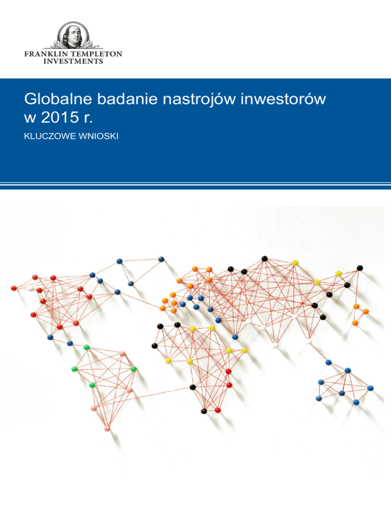 Globalne badanie nastrojów inwestorów w 2015 r. KLUCZOWE WNIOSKI Globalne badanie nastrojów inwestorów w 2015 r. Jak inwestorzy postrzegają swoje perspektywy finansowe w obliczu złożonej sytuacji ekonomicznej na świecie? W celu uzyskania odpowiedzi na to pytanie, od pięciu lat przeprowadzamy globalne badania nastrojów inwestorów. Nasze coroczne ankiety zawierają pytania dotyczące zachowań i oczekiwań inwestorów w perspektywie kolejnego roku. Od czasu pierwszego badania przeprowadzonego w 2011 r., notujemy niesłabnący optymizm inwestorów na całym świecie, który jest jednak nieco tłumiony przez poczucie niepewności, które może powstrzymywać niektórych przed odważniejszym inwestowaniem i realizacją długoterminowych celów inwestycyjnych. Czy nastroje inwestorów zmieniły się po mieszanym roku na rynkach finansowych? Czy inwestorzy widzą jakieś możliwości na horyzoncie? Wyniki naszego badania odpowiadają na te i inne pytania. Zapraszamy do zapoznania się z przewidywaniami polskich inwestorów na nadchodzący rok. 2015 rok 11 500 inwestorów 23 6 kontynentów krajów 2 Globalne badanie nastrojów inwestorów w 2015 r. Kluczowe wnioski Mniejsze oczekiwania inwestorów w stosunku do lokalnych rynków akcji 1 Największe spodziewane zwroty z nieruchomości w krótkiej i długiej perspektywie 2 Inwestorzy zgodni co do znaczenia fachowego zarządzania ryzykiem 3 Obawy inwestorów związane z niepewną sytuacją gospodarczą 4 5 6 3 Ponad połowa polskich inwestorów korzysta z funduszy inwestycyjnych w celu oszczędzania na przyszłość swoich dzieci Inwestorzy gromadzą swoje oszczędności na emeryturę w bankowych produktach oszczędnościowych Globalne badanie nastrojów inwestorów w 2015 r. Mniejsze oczekiwania inwestorów w stosunku do lokalnych rynków akcji 1 • 36% polskich inwestorów uważa, że ich krajowy rynek akcji zakończył 2014 r. na plusie, kolejne 36% sądzi, że rynek pozostał na niezmienionym poziomie, a 28% twierdzi, że rynek zanotował stratę. W rzeczywistości, w 2014 r. rynek poszedł w dół o ponad 13%1, ale tylko niecała jedna trzecia inwestorów ma tego świadomość. • W 2015 r., inwestorzy spodziewają się lepszych wyników niż w roku ubiegłym, ale ich oczekiwania są jednocześnie niższe w porównaniu z prognozami z roku ubiegłego. Według wyników badania z ubiegłego roku, 61% respondentów spodziewało się wówczas dodatnich wyników rynku w nadchodzącym roku (2014 r.). W tym roku, zysków spodziewa się zaledwie 47% inwestorów. • W ujęciu globalnym, 58% inwestorów uważa, że ich lokalne rynki akcji pójdą w nadchodzącym roku w górę, co sygnalizuje nieznaczny spadek optymizmu w stosunku do rynków lokalnych w porównaniu z rokiem ubiegłym (-4%). OPTYMIZM W STOSUNKU DO AKCJI OGRANICZONY, ALE ROSNĄCY Inwestorzy uważają, że 2015 będzie lepszym rokiem dla lokalnych rynków akcji w porównaniu z rokiem poprzednim. 47% 36% 47% respondentów spodziewa się zysków polskiego rynku akcji w nadchodzącym roku. 2014 2015 36% inwestorów twierdzi, że rynek akcji zakończył ubiegły rok na plusie. 1. Wg danych MSCI. 4 Globalne badanie nastrojów inwestorów w 2015 r. Największe spodziewane zwroty z nieruchomości w krótkiej i długiej perspektywie 2 • To już drugi rok z rzędu, w którym inwestorzy spodziewają się najwyższych zwrotów z inwestycji w nieruchomości w nadchodzącym roku, a na kolejnych miejscach w rankingu znajdują się metale szlachetne i akcje. • W perspektywie najbliższych dziesięciu lat, inwestorzy także stawiają na nieruchomości, metale szlachetne i akcje. PROGNOZY INWESTORÓW DLA POSZCZEGÓLNYCH KLAS AKTYWÓW Inwestorzy wciąż spodziewają się największych zwrotów z nieruchomości w krótkiej i długiej perspektywie. Inwestycje alternatywne Obligacje przedsiębiorstw Oszczędności bankowe / lokaty o stałym oprocentowaniu /… Papiery rządowe Surowce poza metalami Waluty Akcje Metale szlachetne Nieruchomości 5 16% 20% 56% 20% 17% Odsetek inwestorów spodziewających się w 2015 r. najwyższych zwrotów z nieruchomości. 27% 26% 30% 30% 30% 30% 34% 2015 Najbliższe 10 lat 35% 42% 40% 43% 48% 56% 55% Globalne badanie nastrojów inwestorów w 2015 r. Inwestorzy zgodni co do znaczenia fachowego zarządzania ryzykiem 3 • 93% inwestorów stwierdziło, że fachowe zarządzanie ryzykiem jest ważnym lub bardzo ważnym kryterium przy wyborze zarządzającego inwestycjami. Średnia globalna wynosi 94%. • Znaczenie zarządzania ryzykiem rozumieją także inwestorzy w innych częściach Europy; 91% respondentów z tego regionu uważa ten czynnik za „ważne” lub „bardzo ważne” kryterium przy wyborze zarządzającego inwestycjami. Ten pogląd jest najsilniej rozpowszechniony we Włoszech i w Grecji (odpowiednio 96% i 95%). POGLĄDY INWESTORÓW NA TEMAT ZNACZENIA FACHOWEGO ZARZĄDZANIA RYZYKIEM Polscy inwestorzy są zgodni co do kluczowego znaczenia fachowego zarządzania ryzykiem w złożonej sytuacji gospodarczej. 93% respondentów uważa umiejętność zarządzania ryzykiem za ważną cechę zarządzającego inwestycjami 6 Globalne badanie nastrojów inwestorów w 2015 r. Obawy inwestorów związane z niepewną sytuacją gospodarczą 4 • W odpowiedzi na pytanie o źródło największych obaw, inwestorzy przywołują „niepokój związany z przyszłymi warunkami gospodarczymi". Nikt nie jest w stanie przewidzieć przyszłości, ale inwestorzy mają kontrolę nad produktami inwestycyjnymi, które wybierają; niemniej jednak, 28% inwestorów wskazało „wybór nieodpowiednich produktów inwestycyjnych" jako źródło największych obaw, co wskazuje na potrzebę szerszej edukacji dotyczącej produktów i usług finansowych. • Na dalszych miejscach w rankingach czynników wywołujących największe obawy znalazły się potencjalne spadki wartości inwestycji w krótkiej (12%) i długiej (15%) perspektywie. OBAWY INWESTORÓW ZWIĄZANE Z NIEPEWNĄ SYTUACJĄ G
