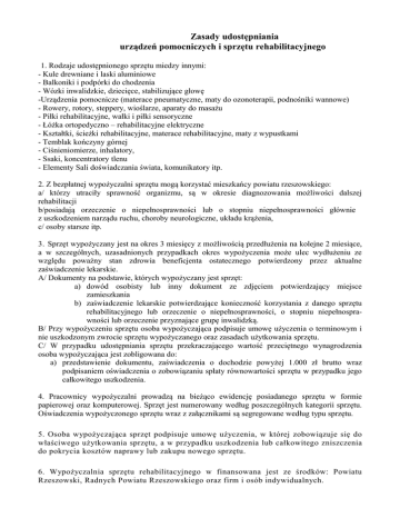 Zasady udostępniania urządzeń pomocniczych i sprzętu