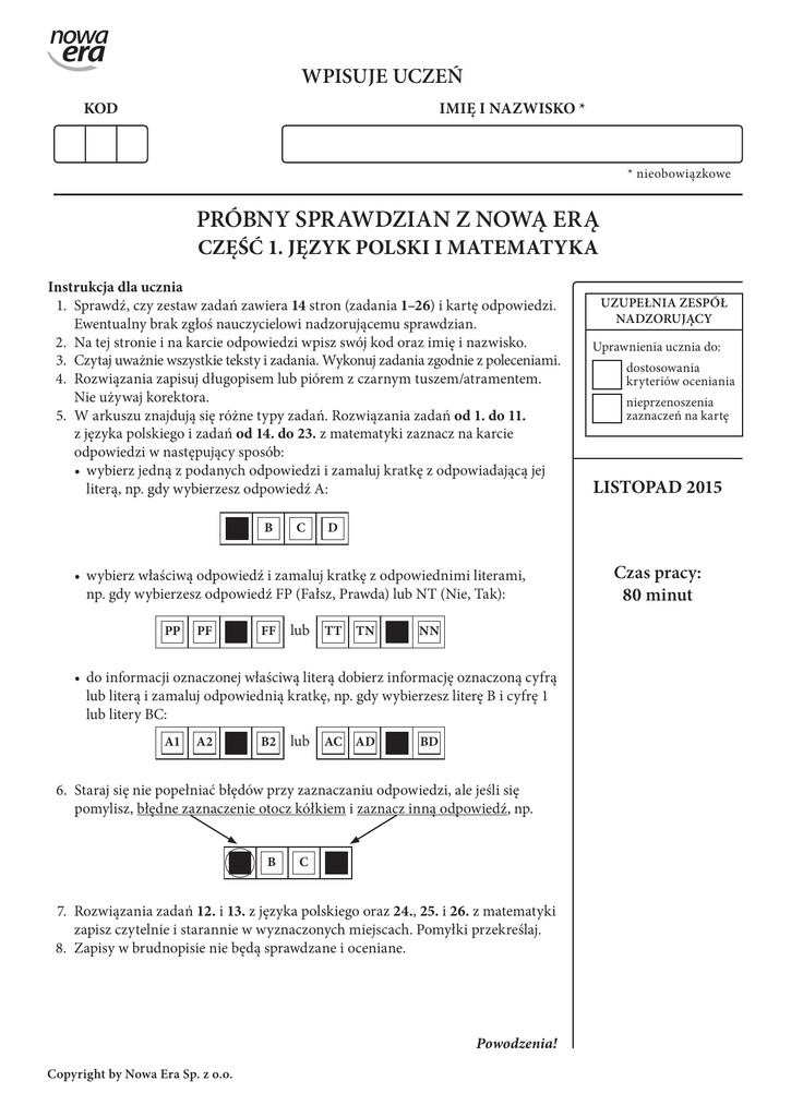 próbny sprawdzian z nową erą część 1. język polski i matematyka