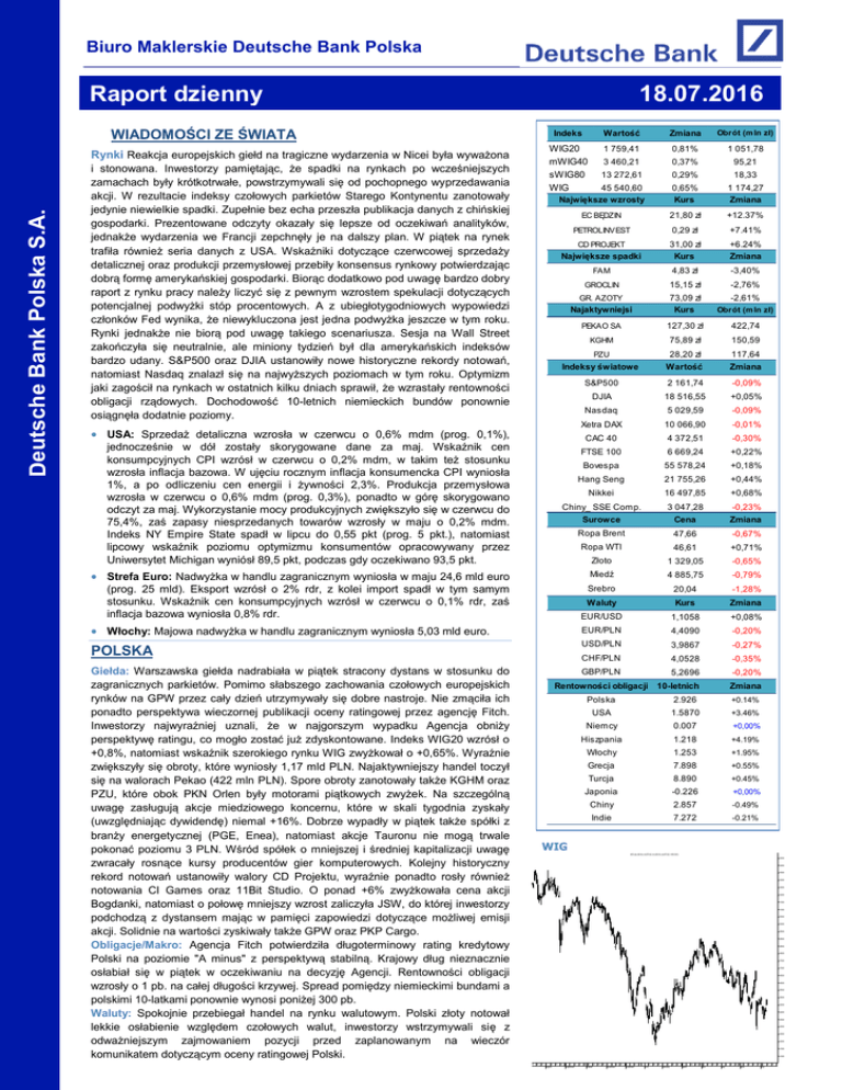 Raport dzienny - Biuro Maklerskie Deutsche Bank Polska