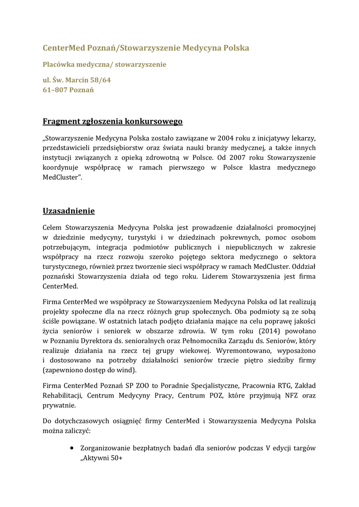 CenterMed Poznań/Stowarzyszenie Medycyna Polska Fragment