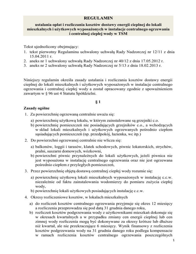 REGULAMIN ustal. i rozl. opłat c.o. i cw - poprawiony