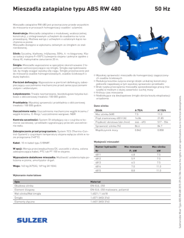 Mieszadła zatapialne typu ABS RW 480 50 Hz