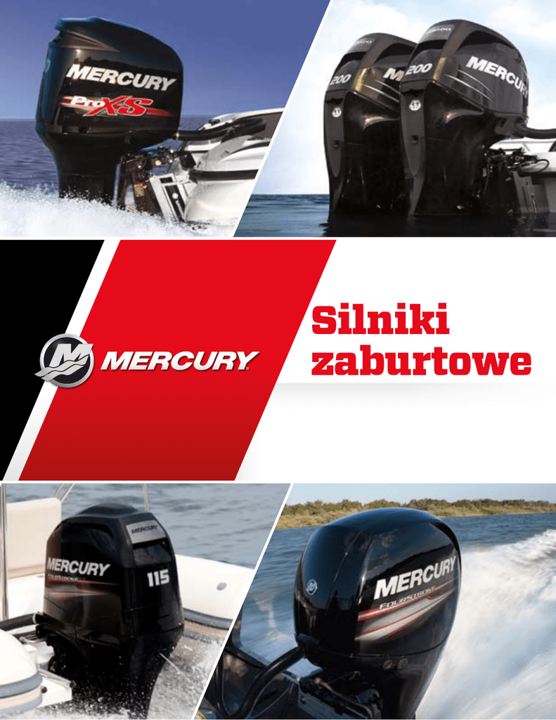 Silniki zaburtowe Doświadcz najlepszego w pływaniu Wyposażając swoją łódź w silnik zaburtowy Mercury, otrzymujesz nie tylko najlepszą, dostępną na rynku moc, ale również wsparcie doświadczonego zespołu entuzjastów wodniactwa, którym zależy na Twoim bezpieczeństwie i Twojej pasji. Niezależnie od tego w jaki sposób chcesz wykorzystać swoją łódź - wędkowanie, narciarstwo wodne, rejsy wycieczkowe lub po prostu relaks w słoneczny dzień. Wszyscy w Mercury dbają o to, aby każda minuta, którą spędzasz na wodzie była niezapomnianym przeżyciem. Przez ponad 70 lat, nacisk, który kładziemy na rozwój zespołów silnikowych sprawił, że żadna inna firma nie pomogła pasjonatom wodniactwa w taki sposób jak Mercury. Z pełną gamą opcji zaburtowych, możesz liczyć na to, że wydajność, niezawodność oraz doświadczenie, których tak bardzo potrzebujesz, stoją na najwyższym poziomie. Niezależnie od tego, czy decydujesz się na cichy model czterosuwowy lub błyskawicznie szybki OptiMax, każdy rodzaj Mercury daje Ci niewiarygodną kontrolę nad prędkością, niezawodność i oszczędność paliwa. Silniki zaburtowe Mercury obsługuje największa sieć wyszkolonych dealerów na świecie, z najlepszymi warunkami gwarancyjnymi w tej branży. Mamy nadzieję, że Państwa wybór w zakresie zasilania łodzi padnie na Mercury. Jeśli tak to obiecujemy jedno: Będziemy służyć Państwu pomocą codziennie. Verado 150 - 300KM - - - - - - - - - - - - - - - - 4 SILNIKI CZTEROSUWOWE 150KM - - - - - - - - - - - 6 SILNIKI CZTEROSUWOWE 80 – 115KM - - - - - - - - - 8 SILNIKI CZTEROSUWOWE 40 – 60KM - - - - - - - - - 10 SILNIKI CZTEROSUWOWE 25 – 30KM - - - - - - - - - 12 SILNIKI CZTEROSUWOWE 15 – 20KM - - - - - - - - - 14 SILNIKI CZTEROSUWOWE 8 – 9.9KM - - - - - - - - - 16 SILNIKI CZTEROSUWOWE 2.5 - 6KM - - - - - - - - - - 18 OptiMax 75 – 250KM - - - - - - - - - - - - - - - - 20 STEROWNICE ORAZ ŚRUBY NAPĘDOWE - - - - - - - - 22 OLEJE I SMARY - - - - - - - - - - - - - - - - - - - 24 SIEĆ SPRZEDAWCÓW - - - - - - - - - - - - - - - - 26 GWARANCJA ORAZ KORZYŚCI - - - - - - - - - - - - 28 specyfikacja - - - - - - - - - - - - - - - - - - - 30 VERADO® 150 - 300KM Niezrównane wrażenia z pływania Delikatny dźwięk ciszy Jeśli mógłbyś zaprojektować jakikolwiek silnik zaburtowy do swojej łodzi, na jaki byś się zdecydował? Inżynierowie z firmy Mercury skorzystali z uwag żeglarzy takich jak Ty i zaprojektowali rewolucyjny produkt - Verado – jedyny na rynku silnik zaburtowy z doładowaniem. Dzięki sprawdzonej niezawodności, płynnemu działaniu i doskonałej obsłudze, czterosuwowy Mercury Verado to najbardziej zaawansowany system napędowy na wodzie. Zaprojektowany na dłuższą metę Jakość i niezawodność to standard. Dlatego Verado został zaprojektowany w odpowiedni sposób, łącząc takie funkcje jak konstrukcja z długą śrubą, która przechodzi przez cały blok cylindrów i głowicę cylindra, utrzymując głowicę napędową w stanie ciągłej kompresji, poprawiając tym samym niezawodność poprzez wyeliminowanie skutków rozprężenia i kontrakcji. Co więcej, Mercury Integrated Oil Cooler (zintegrowana chłodnica oleju) poprawia trwałość Verado przez utrzymywanie właściwej temperatury oleju i zmniejszenie jego rozcieńczenia. Odpowiednio napędzani Mercury Verado oferuje mniejsze jednostki o różnorodnym przeznaczeniu, niezależnie od tego czy używasz jednego lub wielu silników do celów przybrzeżnych i morskich. Z ponad 70-letnim doświadczeniem w budowaniu morskich systemów napędowych, wiemy co działa najlepiej. 4 Mercury Verado z doładowaniem nie tylko brzmi cicho, ale również daje takie odczucia. Wbudowany cylinder rzędowy jest lepiej zbalansowany i działa płynniej niż tradycyjne V-ki. Co więcej, zaawansowana sekcja środkowa (Advanced Mid Section) wykorzystywana w modelach 6-cylindrowych czerpie z unikalnego systemu montowania, który izoluje głowicę napędową, eliminując w ten sposób wibracje. MercMonitor™ oraz Eco-Screen Poprzez stałe monitorowanie trymu silnika, prędkości oraz zużycia paliwa, funkcja ECOScreen znajdująca się na MercMonitor wysyłać będzie łatwe do odczytania informacje, których celem jest pomóc użytkownikowi w kontrolowaniu optymalnego zużycia paliwa. Doskonała i precyzyjna kontrola Doskonałe pływanie musi oznaczać absolutną kontrolę. Verado jest pierwszym silnikiem zaburtowym na świecie z elektrycznym sterowaniem hydraulicznym, które praktycznie eliminuje obciążenie obrotowe podczas sterowania. W połączeniu z precyzyjnymi biegami i reagowaniem przepustnicy Mercury’s Digital Throttle & Shift, otrzymujemy niesamowite wrażenia z pływania, które zaskoczą każdego. Tryb cienia Dzięki technologii cienia firmy Mercury (Mercury’s Shadow) operowanie wieloma dźwigniami silnika nie sprawia już więcej kłopotów. Zamiast tego, dwie dźwignie kontrolują wiele silników. Ponadto, tryb cienia pozwala na zastosowanie zarówno trzech oraz czterech silników i dwóch instalacji urządzeń sterowych. VERADO / 5 SILNIKI 150KM CZTEROSUWOWE Przekraczając granicę niezawodności Cel naszych inżynierów polegał na zaprojektowaniu i wykonaniu najbardziej niezawodnego silnika czterosuwowego 150 KM na rynku. Aby wykonać zadanie, zaczęli oni od silnego bloku 3.0 l o mocy ponad 250 KM, który następnie przekształcili na 150 KM. W ten sposób, trwałość jednostki napędowej została znacząco wydłużona. Dodaj do tego najwyższej klasy silnik o zmiennej pojemności skokowej, solidną obudowę przekładni zębatej i prawie 10,000 godzin testów na wodzie, zsumuj z 5-letnią gwarancją producenta*, a otrzymasz odpowiedź dlaczego specjaliści z firmy Mercury uważają, że ich prace zakończyły się sukcesem. Bez napięcia Pracuj mniej, osiągnij więcej. Brzmi nieźle, prawda? To sekret czterosuwowego silnika Mercury 150 KM. Z pojemnością 3,0 l, ten 4-cylindrow