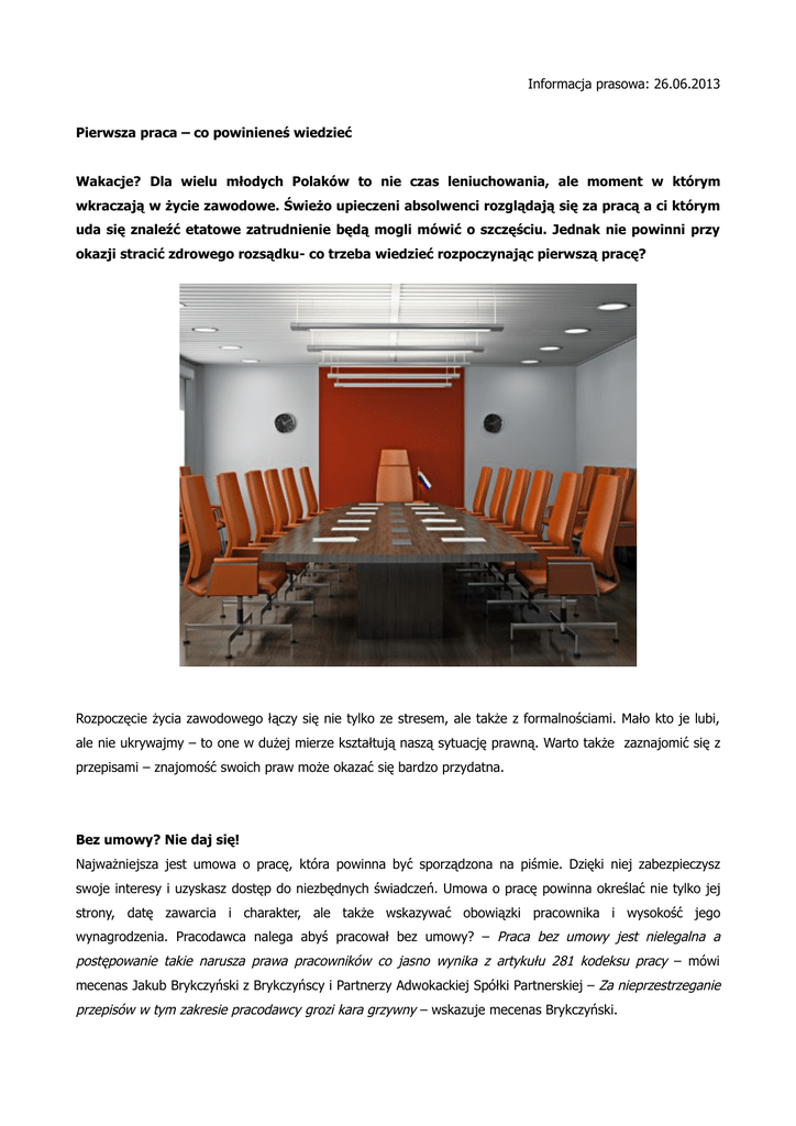 Informacja prasowa: 26.06.2013 Pierwsza praca – co
