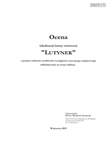 Załącznik nr IX Ocena lokalizacji farmy wiatrowej "LUTYNEK" z punktu widzenia możliwości wystąpienia znaczącego negatywnego oddziaływania na szatę roślinną Opracowanie: Dr inż. Wojciech Ciurzycki Szkoła Główna Gospodarstwa Wiejskiego ul. Nowoursynowska 159 02-776 Warszawa Warszawa 2013 Spis treści 1. Wstęp. Założenia metodyczne 3 2. Położenie farmy 7 2.1. Liczba i lokalizacja turbin 7 2.2. Ogólna charakterystyka przyrodnicza obszaru 7 3. Istniejące formy ochrony przyrody 8 3.1. Obszary Natura 2000 8 3.2. Inne obiekty chronione 8 4. Potencjalne bogactwo szaty roślinnej 8 5. Wyniki inwentaryzacji terenowej 9 5.1. Opis lokalizacji poszczególnych turbin 9 5.2. Charakterystyka szaty roślinnej 9 5.2.1. Gatunki flory 9 5.2.2. Zbiorowiska roślinne 11 6. Podsumowanie i wnioski 13 Literatura 14 2 1. Wstęp. Założenia metodyczne Oddziaływanie elektrowni wiatrowych może mieć potencjalnie znaczący negatywny wpływ na środowisko przyrodnicze, przy czym w odniesieniu do jego poszczególnych elementów występują zróżnicowane rodzaje zagrożeń. Wśród najważniejszych wymieniane są: śmiertelność ptaków i nietoperzy w wyniku zderzeń wymuszenie tras wędrówek i przelotów ptaków uszczuplenie żerowisk ptaków w wyniku ich odstraszania wymuszanie zmiany sposobu wykorzystania przestrzeni przez nietoperze bezpośrednie zniszczenie lub uszczuplenie siedlisk przyrodniczych lub siedlisk gatunków przez samą budowlę Spośród wymienionych elementów zdecydowanie największe znaczenie ma oddziaływanie turbin na ptaki i nietoperze. Te grupy gatunków są przedmiotem oddzielnych szczegółowych badań, dla których opracowano precyzyjną metodykę. Oddziaływanie budowy farm wiatrowych na siedliska przyrodnicze oraz występujące na nich gatunki roślin i innych organizmów jest zwykle znacznie mniejsze i nie zostały w tym zakresie wypracowane szczegółowe zasady postępowania podczas wykonywania ocen oddziaływania. W związku z powyższym na wstępie niniejszego raportu przedstawiono założenia jakie przyjęto w trakcie jego opracowywania. Założenia metodyczne Oddziaływanie każdej inwestycji na środowisko naturalne można podzielić na: bezpośrednie - kiedy budowa obiektu powoduje fizyczne zniszczenie stanowiska gatunku czy fragmentu siedliska pośrednie - kiedy w trakcie budowy gatunek/siedlisko nie zostaje zniszczony jednak powstanie i funkcjonowanie obiektu powoduje takie zmiany w środowisku, w następstwie których zanikają gatunki i siedliska Samą inwestycję można natomiast podzielić na: obiekty, które są głównym celem inwestycji oraz infrastrukturę niezbędną do ich budowy i funkcjonowania W przypadku farm wiatrowych najważniejszym sposobem negatywnego oddziaływania są potencjalne kolizje śmigieł wiatraków z ptakami i nietoperzami. Jednak możliwe jest, i obecnie także podlega ocenie, oddziaływanie na siedliska przyrodnicze, w tym w szczególności na szatę roślinną. Na wstępie należy zaznaczyć, że szata roślinna, w odróżnieniu od zwierząt, może być rozpatrywana w 2 aspektach: 3 flory - czyli gatunków roślin roślinności - zbiorowisk roślinnych (utożsamiane z siedliskami przyrodniczymi) Znajduje to swoje odzwierciedlenie m. in. w Dyrektywie siedliskowej Natura 2000 gdzie chronione gatunki roślin i chronione siedliska wymienione są w 2 odrębnych załącznikach (Dyrektywa 92/43/EEC): Załącznik 1 - Zawiera typy siedlisk naturalnych ważnych dla miejscowych społeczności, których ochrona wymaga wyznaczenia obszarów szczególnie chronionych. Załącznik 2 - Wymienia gatunki roślin i zwierząt będące przedmiotem zainteresowania Wspólnoty, których ochrona wymaga wyznaczenia specjalnych obszarów ochrony. Przy ocenie oddziaływania inwestycji na szatę roślinną zawsze jednocześnie uwzględniane są zarówno siedliska jak też gatunki, które dodatkowo mogą być chronione na podstawie krajowego rozporządzenia w sprawie gatunków dziko występujących roślin objętych ochroną. Szata roślinna jest głównym przedmiotem opracowania, jednak w opracowaniu przyrodniczym zwrócono także uwagę na inne chronione gatunki, z pozostałych grup organizmów, czyli grzybów i zwierząt (z wyjątkiem ptaków i nietoperzy), które potencjalnie mogłyby wystąpić na badanym terenie i podlegać znaczącemu negatywnemu wpływowi projektowanych farm. Potencjalne oddziaływanie na florę i roślinność oraz inne elementy środowiska przyrodniczego na terenie projektowanych farm wiatrowych, w świetle przedstawionych na wstępie uwag, można ogólnie scharakteryzować następująco: 1. Budowa i funkcjonowanie wiatraków a) budowa, oddziaływanie bezpośrednie - w wyniku zajęcia gruntu pod budowę fundamentów niszczona jest całkowicie szata roślinna w danym miejscu, oraz nasila się zjawisko synantropizacji w bezpośrednim sąsiedztwie. Tego typu oddziaływanie mogłoby być znaczące gdyby lokalizacje wyznaczono na terenie cennego botanicznie siedliska z występującymi tam rzadkimi i chronionymi gatunkami. Taka sytuacja zachodzi jednak stosunkowo rzadko, większość lokalizacji wyznaczana jest już na etapie wstępnego projektowania na obszarach rolniczych, na terenie intensywnych upraw, z florą i roślinnością synantropijną charakteryzującą się małym prawdopodobieństwem wystąpienia gatunków i siedlisk cennych. Możliwość taka jednak potencjalnie istnieje. Na terenach otwartych, szczególnie pagórkowatych, w miejscach nasłonecznionych, jeśli jakiś wiatrak zostanie zlokalizowany na terenach nie użytkowanych jako grunty orne, istnieje możliwość trafienia na miejsce, w którym występują np. cenne murawy ciepłolubne, będące siedliskami chronionymi dyrektywą habitatową Natura 2000 (Herbich 2004a i b). b) funkcjonowanie - to, co stanowi główny sposób negatywnego oddziaływania na zwierzęta czyli praca wiatraków i związane z nią kolizje z ptakami i nietoperzami, po wybudowaniu nie ma zn