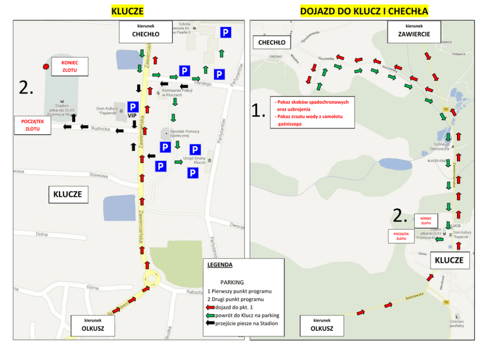 KLUCZE DOJAZD DO KLUCZ I CHECHŁA kierunek O CHECHŁO KLUCZE O KLUCZE kierunek ZAWIERCIE CHECHŁO KONIEC ZLOTU 2. 1. VIP POCZĄTEK ZLOTU - Pokaz skoków spadochronowych oraz uzbrojenia - Pokaz zrzutu wody z samolotu gaśniczego KLUCZE 2. KONIEC ZLOTU POCZĄTEK ZLOTU KLUCZE LEGENDA PARKING kierunek OLKUSZ 1 Pierwszy punkt programu 2 Drugi punkt programu dojazd do pkt. 1 powrót do Klucz na parking przejście piesze na Stadion kierunek OLKUSZ Program zlotu WOJEWÓDZTWO MAŁOPOLSKIE 9:30 – rozpoczęcie Zlotu KLUCZE 10:00 - pokaz skoków spadochronowych i uzbrojenia VI Brygady Powietrzno Desantowej 10:30 – 11:00 – poczęstunek III Małopolski 12:00 - przejazd do miejscowości Klucze i przejście młodzieży torem przeszkód oraz konkurencje Zielony Staw: rzut bojką do tonącego przejście po Pustyni Błędowskiej wspinaczka na górę Czubatkę Czubatka: udzielanie pierwszej pomocy – pokaz Zlot Młodzieżowych Drużyn Pożarniczych POWIAT OLKUSKI 14:30 – 15:00 – przemarsz na stadion sportowy w Kluczach pokazy sprzętu strażackiego posiłek występy orkiestry dętej oraz zespołów młodzieżowych 10 sierpień 2013r. ZAWIERCIE KLUCZE 17:00 – zakończenie Zlotu CHRZANÓW GMINA KLUCZE
