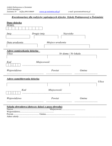 Kwestionariusz dla rodziców zapisujących dziecko Szkoły