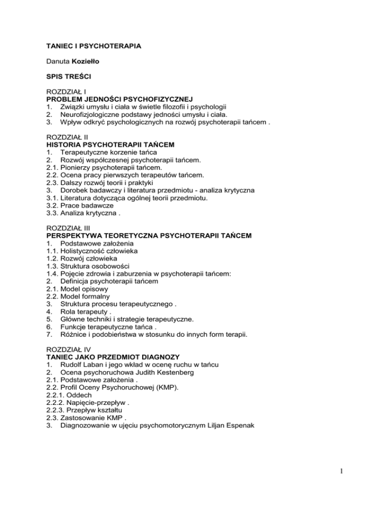TANIEC I PSYCHOTERAPIA_Spis tresci