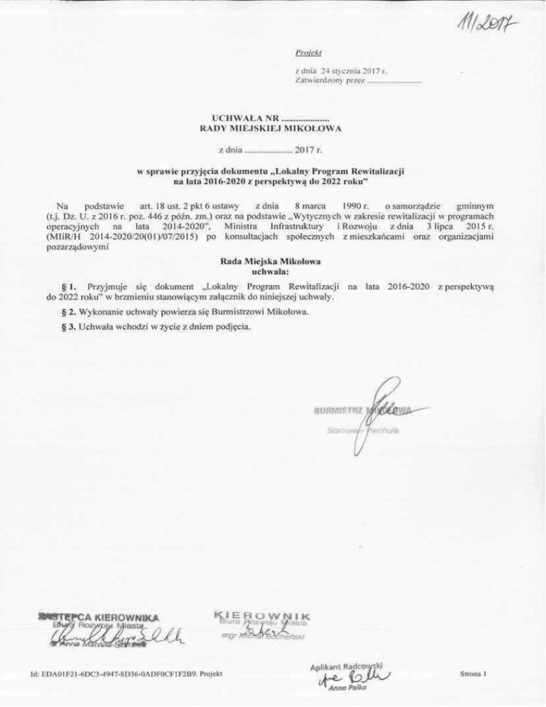 Lokalny Program Rewitalizacji na lata 2016-2020 z perspektywą do 2022 roku 1 Id: EDA01F21-6DC3-4947-8D36-0ADF0CF1F2B9. Projekt Strona 2 Spis treści Wykaz skrótów ...................................................................................................... 4 Wstęp .................................................................................................................. 5 1. Opis powiązań programu z dokumentami strategicznymi i planistycznymi gminy i powiatu mikołowskiego ......................................................................................... 8 2. Diagnoza czynników i zjawisk kryzysowych oraz skala i charakter potrzeb rewitalizacyjnych (w tym analiza przyczyn degradacji i charakterystyka sytuacji na obszarze objętym LPR-em) ....................................................................................14 2.1. Informacje ogólne (położenie geograficzne, rys historyczny, podział administracyjny) ..................................................................................................14 2.2. Sfera społeczna ...........................................................................................15 2.2.1. Struktura demograficzna i społeczna ...........................................................15 2.2.2. Pomoc społeczna ......................................................................................19 2.2.3. Edukacja .................................................................................................30 2.2.4. Kapitał społeczny .....................................................................................34 2.2.5. Bezpieczeństwo publiczne ..........................................................................37 2.2.6. Charakterystyka bezrobocia .......................................................................39 2.2.7. Podsumowanie .........................................................................................42 2.3. Sfera gospodarcza .......................................................................................42 2.3.1. Liczba i struktura podmiotów gospodarczych................................................42 2.3.2. Najważniejsze zakłady działające w gminie ..................................................46 2.3.3. Podsumowanie .........................................................................................47 2.4. Sfera środowiskowa .....................................................................................47 2.4.1. Obszary chronione oraz tereny zielone ........................................................48 2.4.2. Jakość środowiska ....................................................................................50 2.4.3. Gospodarka odpadami .................................................................................52 2.4.3. Podsumowanie .........................................................................................53 2.5. Sfera przestrzenno-funkcjonalna ...................................................................53 2.5.1. Struktura użytkowania gruntów .................................................................53 2.5.2. Charakterystyka przestrzeni publicznych, w tym tereny rekreacyjne ...............54 2.5.3. Dostępność komunikacyjna .......................................................................55 2.5.4. Zabytki ...................................................................................................56 2.5.5. Podsumowanie .........................................................................................58 2.6. Sfera techniczna..........................................................................................59 2.6.1. Charakterystyka zasób mieszkaniowy oraz budynki i budowle o innym przeznaczeniu ......................................................................................................59 2.6.2. Infrastruktura techniczna ..........................................................................61 2.6.3. Podsumowanie .........................................................................................62 3. Wyniki badania ankietowego ............................................................................64 3.1. Metodologia ................................................................................................64 3.2. Próba .........................................................................................................64 3.3. Wyniki badania ...........................................................................................65 3.4. Wnioski w zakresie diagnozy czynników i zjawisk kryzysowych ..........................74 3.4.1. Sfera społeczna ........................................................................................74 3.4.2. Sfera gospodarcza ....................................................................................77 3.4.3. Sfera środowiskowa ..................................................................................78 3.4.4. Sfera przestrzenno-funkcjonalna ................................................................79 3.4.5. Sfera techniczna ......................................................................................79 4. Zasięgi przestrzenne obszaru/obszarów rewitalizacji ...........................................83 5. Wizja stanu obszaru po przeprowadzeniu rewitalizacji .........................................94 6. Cele rewitalizacji oraz kierunki działań ..............................................................95 7. Planowane, podstawowe projekty i przedsięwzięcia rewitalizacyjne wraz z charakterystyką pozostałych rodzajów przedsięwzięć rewitalizacyjnych ................... 104 8. Mechanizmy zapewnienia komplementarności w ramach programu rewitalizacji ... 123 9. Indykatywne ramy finansowe ......................................................................... 127 2 Id: EDA01F21-6DC3-4947-8D36-0ADF0CF1F2B9. Projekt Strona 3 10. Mechanizmy włączenia mie
