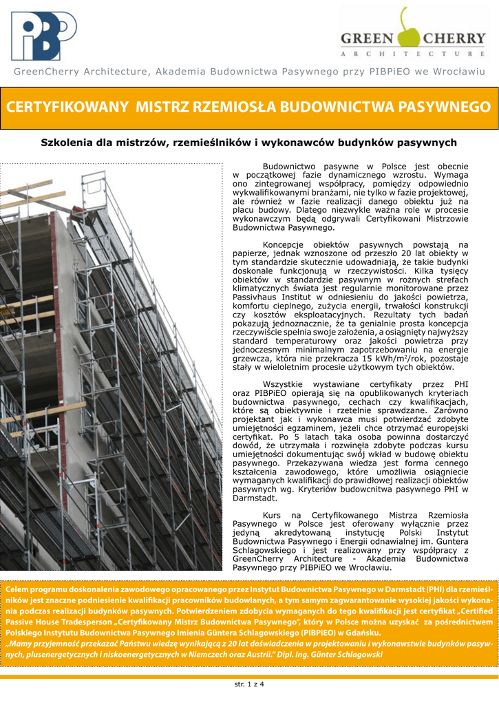 certyfikowany mistrz rzemiosła budownictwa pasywnego