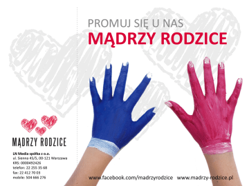 PROMUJ SIĘ U NAS MĄDRZY RODZICE LN Media spółka z o.o. ul. Sienna 45/5, 00-‐121 Warszawa KRS: 0000492426 telefon: 22 255 35 68 fax: 22 412 70 03 mobile: 504 666 276 www.facebook.com/madrzyrodzice www.madrzy-‐rodzice.pl Kim jesteśmy • Mądrzy Rodzice to strona poświęcona wychowaniu dzieci. • Funkcjonujemy zarówno jako fanpage na portalu Facebook, jak i jako samodzielna strona internetowa. LN Media spółka z o.o. ul. Sienna 45/5, 00-‐121 Warszawa KRS: 0000492426 telefon: 22 255 35 68 fax: 22 412 70 03 mobile: 504 666 276 www.facebook.com/madrzyrodzice www.madrzy-‐rodzice.pl Do kogo się kierujemy LN Media spółka z o.o. ul. Sienna 45/5, 00-‐121 Warszawa KRS: 0000492426 telefon: 22 255 35 68 fax: 22 412 70 03 mobile: 504 666 276 • Kierujemy się do rodziców i opiekunów dzieci i nastolatków, ale większość naszych użytkowników to rodzice dzieci poniżej 7 roku życia. • Docieramy do osób, które mają dzieci lub planują je mieć w najbliższym czasie. • 90% naszych fanów to kobiety. • 58% naszych fanów to osoby w wieku 25-‐34 lat, a 23% -‐ 35-‐44 lat. • Mamy blisko 90.000 fanów, tygodniowo docieramy do ponad 700.000 osób. • Nasza strona www ma miesięcznie ok. 50.000 odsłon i ponad 12.000 unikalnych użytkowników. www.facebook.com/madrzyrodzice www.madrzy-‐rodzice.pl Mamy najwięcej fanów wśród stron o wychowaniu dzieci Funpik AgnieszkaStein.pl Ekorodzice.pl Przytulmniemamo.pl Dzielnica Rodzica MamaZone.pl Dzikie dzieci Dzieci są ważne Mam dziecko Interia.pl Dziecko Najlepsza Inwestycja Dzieckoimama.pl Familie.pl Paren`ng.pl Moje dziecko jest wspaniałe Moje Mądre Dziecko SOS Rodzice Magazyn Dzecko LN Media spółka z o.o. ul. Sienna 45/5, 00-‐121 Warszawa KRS: 0000492426 telefon: 22 255 35 68 fax: 22 412 70 03 mobile: 504 666 276 Mądrzy Rodzice 4 463 2 614 9 669 1 804 7 759 16 764 8 181 39 122 4 048 5 405 5 986 6 421 7 378 13 212 27 656 24 474 21 885 88 973 0 10 000 20 000 30 000 40 000 50 000 60 000 70 000 80 000 90 000 100 000 www.facebook.com/madrzyrodzice www.madrzy-‐rodzice.pl Ranking WirtualneMedia.pl – marzec 2014 LN Media spółka z o.o. ul. Sienna 45/5, 00-‐121 Warszawa KRS: 0000492426 telefon: 22 255 35 68 fax: 22 412 70 03 mobile: 504 666 276 W kategorii „Matka i dziecko”, w której znajdują się również fanpage komercyjnych marek, Mądrzy Rodzice znaleźli się na 8. miejscu pod względem liczby fanów www.facebook.com/madrzyrodzice www.madrzy-‐rodzice.pl Ranking WirtualneMedia.pl – marzec 2014 LN Media spółka z o.o. ul. Sienna 45/5, 00-‐121 Warszawa KRS: 0000492426 telefon: 22 255 35 68 fax: 22 412 70 03 mobile: 504 666 276 W kategorii „Matka i dziecko”, w której znajdują się również fanpage komercyjnych marek, Mądrzy Rodzice znaleźli się na 4. miejscu pod względem zaangażowania fanów www.facebook.com/madrzyrodzice www.madrzy-‐rodzice.pl Konkursy dla użytkowników • • • • • • • LN Media spółka z o.o. ul. Sienna 45/5, 00-‐121 Warszawa KRS: 0000492426 telefon: 22 255 35 68 fax: 22 412 70 03 mobile: 504 666 276 Przygotowujemy grafiki konkursowe (ilustracja do tekstów, grafiki na fanpage). Konsultujemy prawnie regulamin konkursu. Przekazujemy klientowi dane zwycięzców w celu przekazania nagród. Informacje o konkursie zamieszczamy na stronie internetowej. Publikujemy co najmniej 2 wpisy na fanpage (ogłoszenie konkursu, ogłoszenie wyników). Wpis z ogłoszeniem konkursu jest widoczny na górze fanpage przez czas trwania konkursu. Jeśli konkurs trwa dłużej, zamiast tego publikujemy wpisy przypominające o konkursie z linkiem do informacji o nim na stronie www. Koszt: od 900 zł (nie zawiera kosztów nagrody) + 23% VAT www.facebook.com/madrzyrodzice www.madrzy-‐rodzice.pl Polecane produkty LN Media spółka z o.o. ul. Sienna 45/5, 00-‐121 Warszawa KRS: 0000492426 telefon: 22 255 35 68 fax: 22 412 70 03 mobile: 504 666 276 • Publikujemy prezentacje produktów i usług kierowanych do rodziców i dzieci – są to materiały przygotowane przez Klientów. • Długość artykułu: 1.800 -‐ 2.000 znaków. • Artykuły ilustrowane są materiałami przekazanymi przez zleceniodawcę. • Przy artykule zamieszczamy logo produktu/usługi lub zleceniodawcy wraz z linkiem do strony www. • Artykuł promowany jest wpisem na fanpage. • Zastrzegamy sobie prawo odmowy publikacji artykułu, gdy dotyczy produktu niezgodnego z naszymi przekonaniami. • Koszt: od 700 PLN + 23% VAT (bez kosztów FB Ads) www.facebook.com/madrzyrodzice www.madrzy-‐rodzice.pl Artykuły sponsorowane • • • • • • • • LN Media spółka z o.o. ul. Sienna 45/5, 00-‐121 Warszawa KRS: 0000492426 telefon: 22 255 35 68 fax: 22 412 70 03 mobile: 504 666 276 Publikujemy recenzje oraz omówienia produktów i usług oraz artykuły sponsorowane (np. w formie wywiadów) – są to materiały przygotowane przez nas. Długość artykułu: 1.800 -‐ 4.000 znaków. Artykuły ilustrowane są materiałami przekazanymi przez zleceniodawcę. Przy artykule zamieszczamy logo produktu/usługi lub zleceniodawcy wraz z linkiem do strony www. Artykuł promowany jest wpisem na fanpage. W dniu publikacji wpis z linkiem do artykułu przypięty jest na górze osi czasu. Możliwe jest dodatkowe wsparcie promocyjne artykułu w postaci promocji opublikowanego na fanpage postu z linkiem do artykułu poprzez reklamy FB Ads. Zastrzegamy sobie prawo odmowy publikacji artykułu, gdy dotyczy produktu niezgodnego z naszymi przekonaniami. Koszt: od 1.200 PLN + 23% VAT (bez kosztów FB Ads) www.facebook.com/madrzyrodzice www.madrzy-‐rodzice.pl Polecenie linku LN Media spółka z o.o. ul. Sienna 45/5, 00-‐121 Warszawa KRS: 0000492426 telefon: 22 255 35 68 fax: 22 412 70 03 mobile: 504 666 276 • Umożliwiamy polecenie linku do strony www, fanpage na Facebooku lub profilu w innym portalu społecznościowym na naszej stronie internetowej w zakładce „Polecane linki”: www.madrzy-‐rodzice.pl/polecane