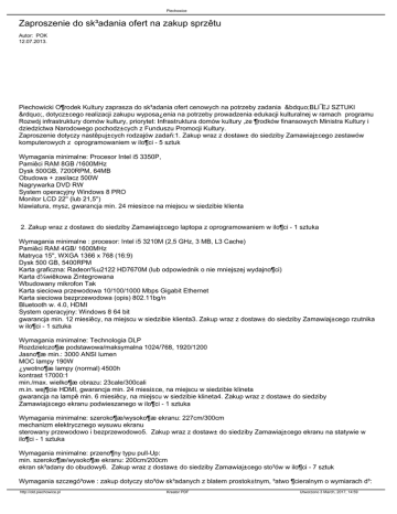Zaproszenie do sk³adania ofert na zakup sprzętu