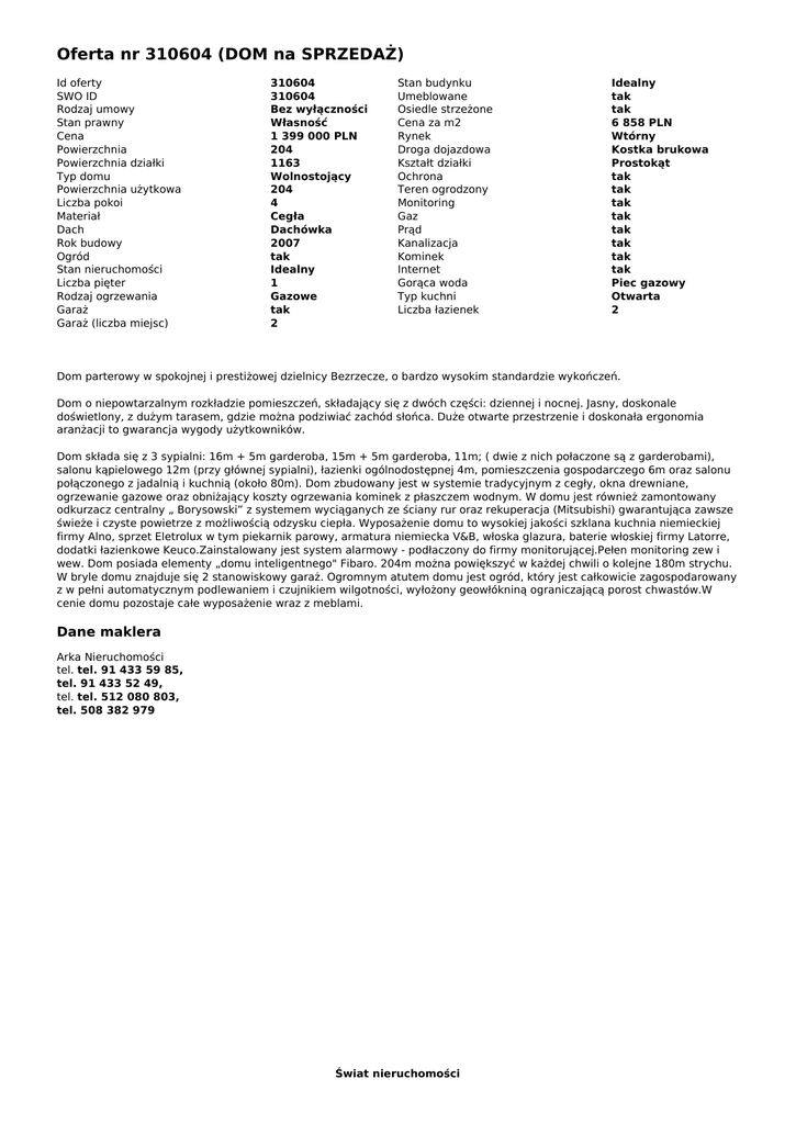 Oferta nr 310604 (DOM na SPRZEDAŻ)