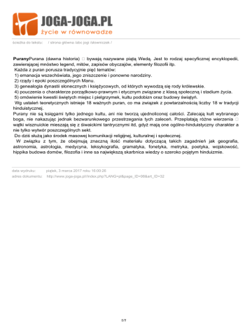 PuranyPurana (dawna historia) bywają nazywane - Joga
