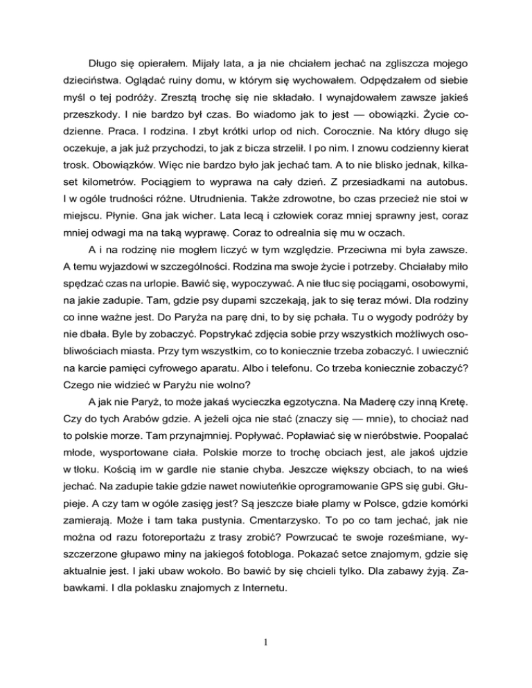 1 Długo się opierałem. Mijały lata, a ja nie chciałem jechać na