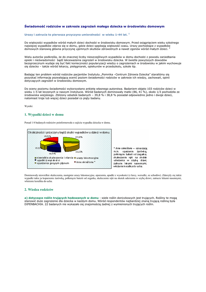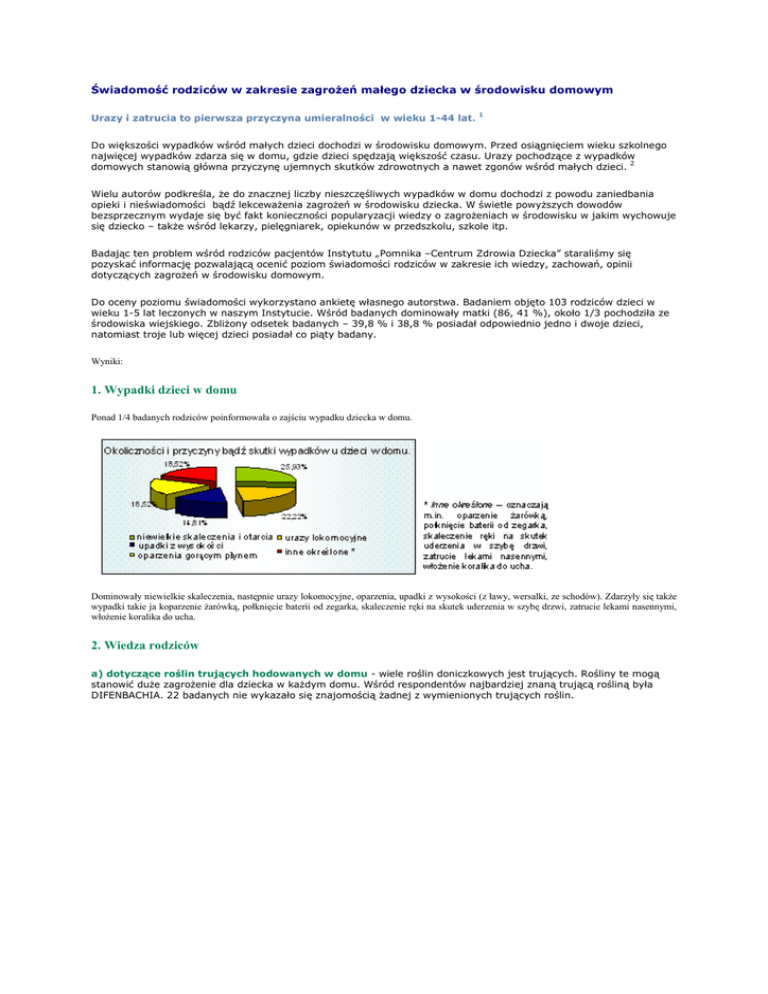 1. Wypadki dzieci w domu 2. Wiedza rodziców